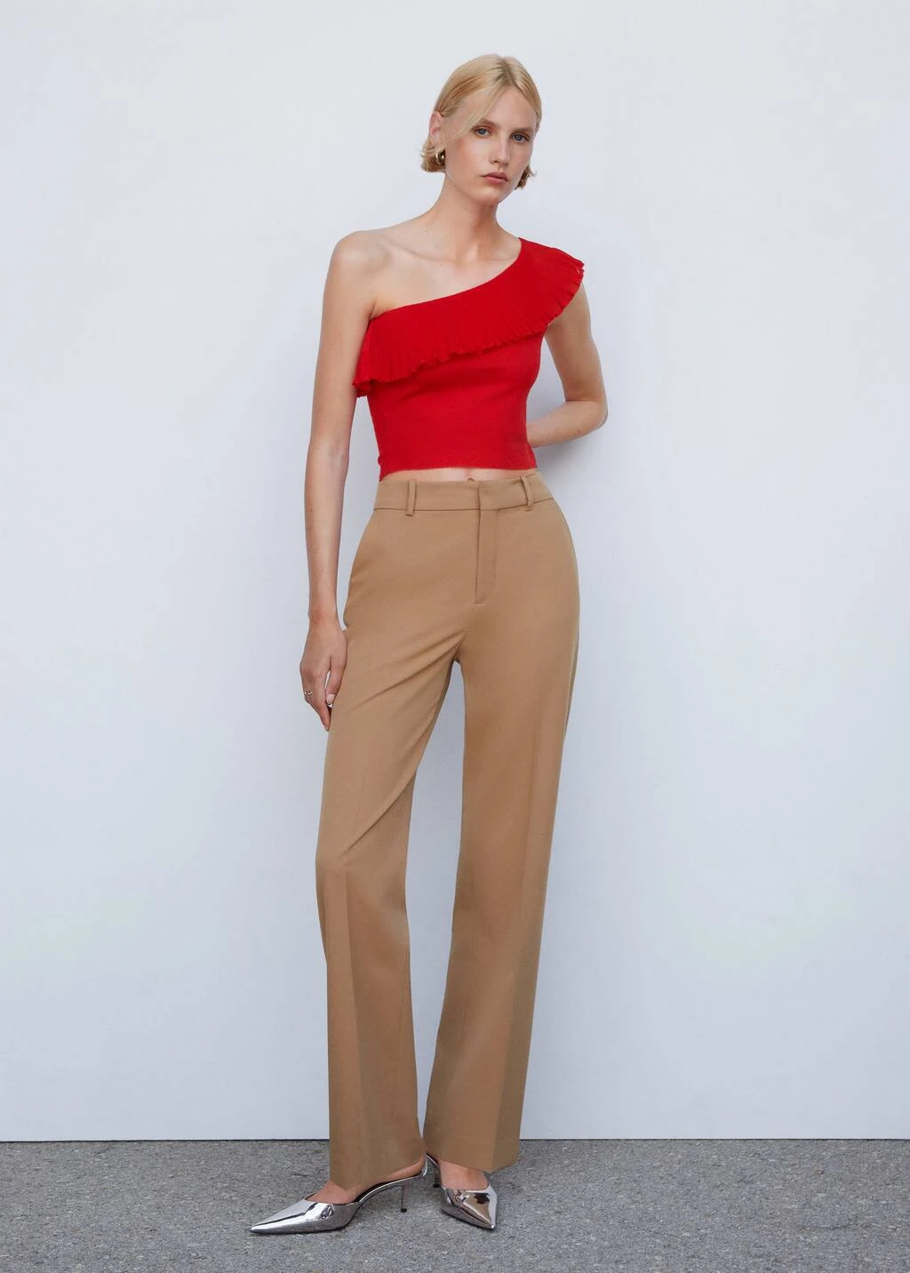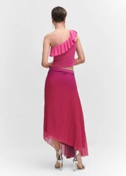 tissu en maille fine, coupe asymetrique, ajuste, style crop, col asymetrique, maxivolant, sans manches, sans fermetureComposition: 70% viscose,30% polyester