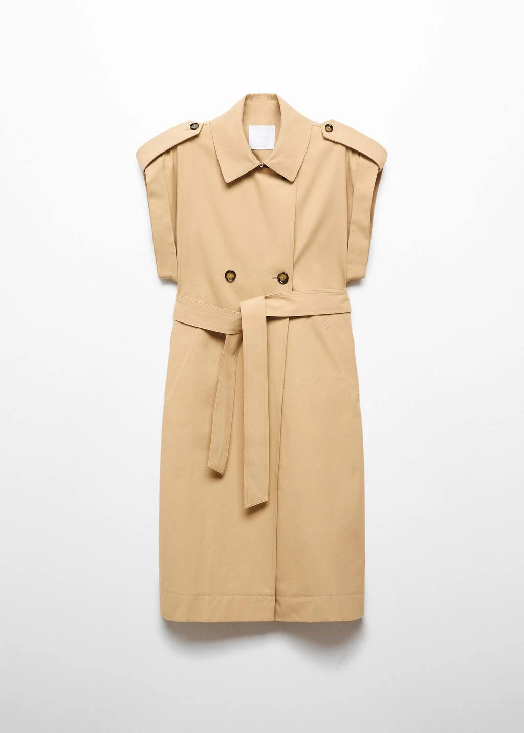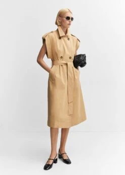 tissu 100Â % coton, style oversize, coupe longue, col en v avec rabat, sans manches, fermeture a double boutonnage, nĆud a la taille, detail d’ouverture au dos, doublureComposition: 100% coton. Doublure: 100% coton