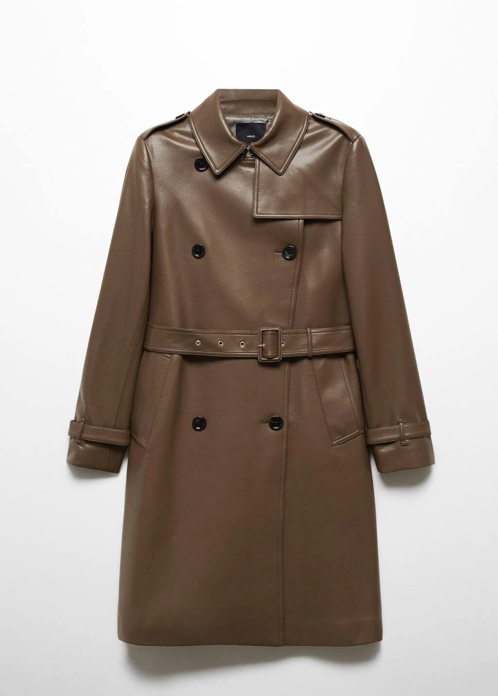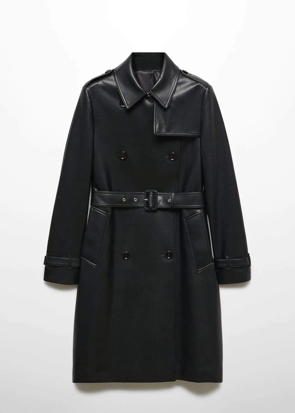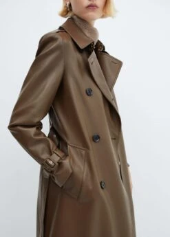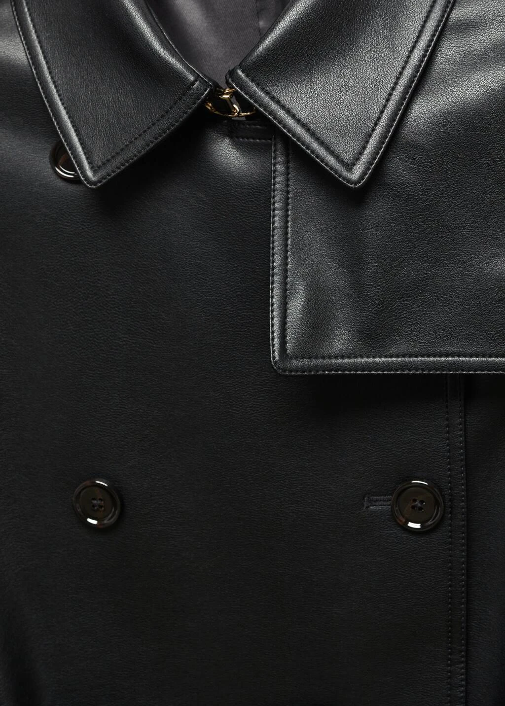 similicuir, coupe droite, croise, longueur normale, col a revers, manches longues, pattes aux poignets, deux poches laterales, ceinture ajustable, bas fendu a l’arriere, fermeture boutonnee sur le devant, boutons effet ecaille, doublureComposition: 100% viscose. Doublure: 100% polyester. RevĂȘtement: 100% polyurethane