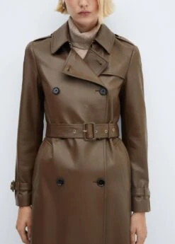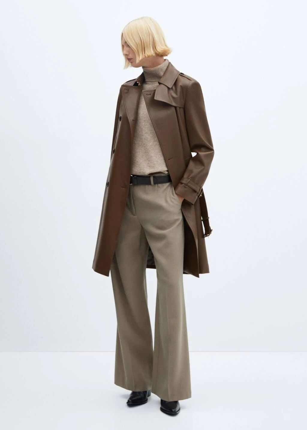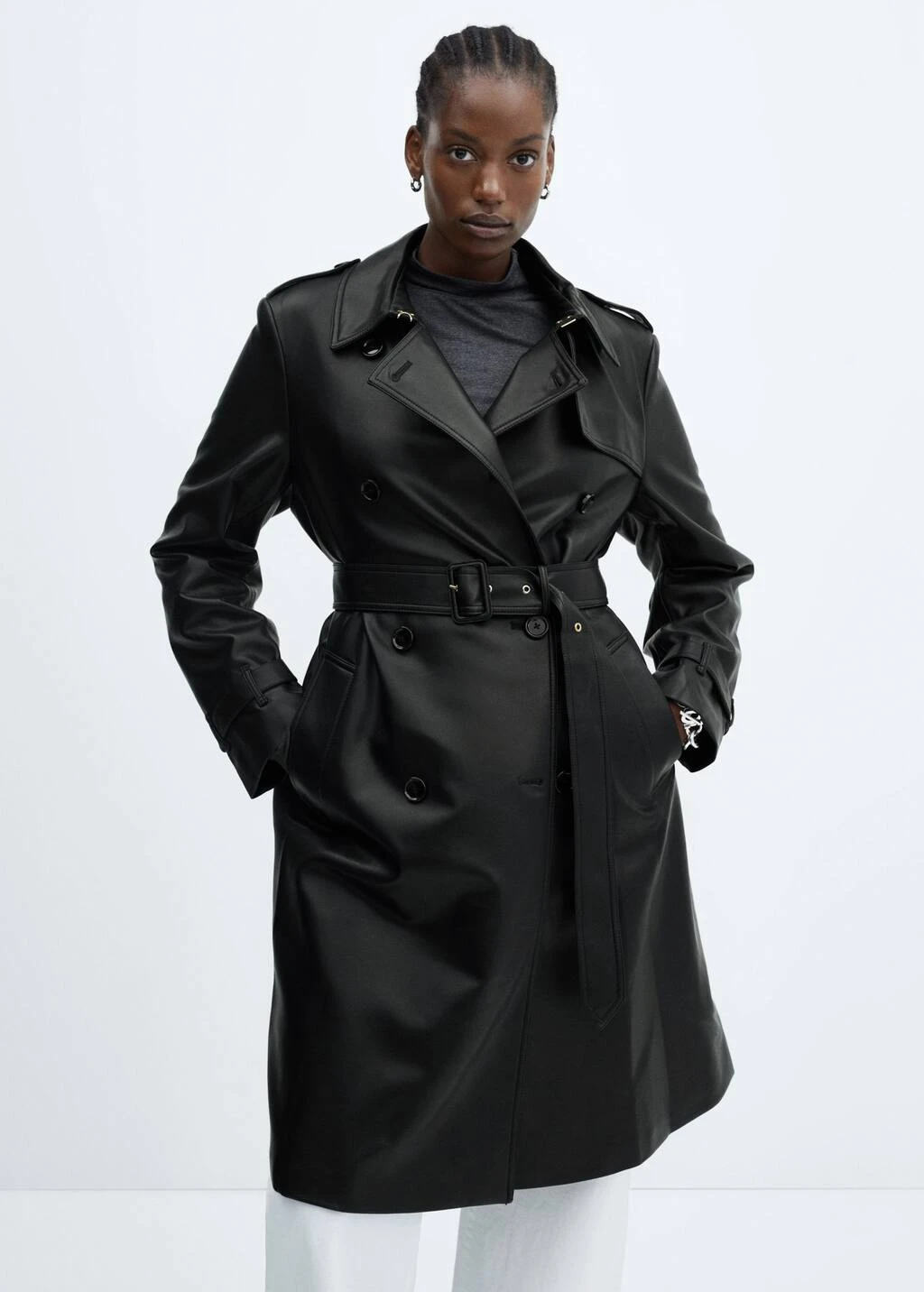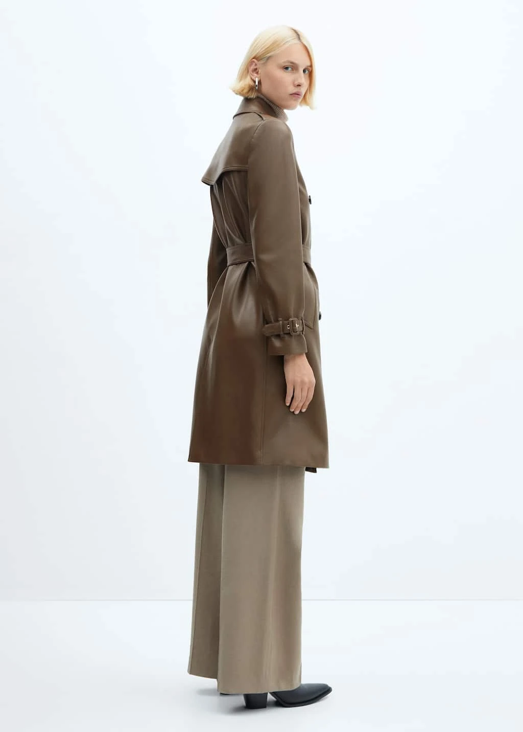 similicuir, coupe droite, croise, longueur normale, col a revers, manches longues, pattes aux poignets, deux poches laterales, ceinture ajustable, bas fendu a l’arriere, fermeture boutonnee sur le devant, boutons effet ecaille, doublureComposition: 100% viscose. Doublure: 100% polyester. RevĂȘtement: 100% polyurethane