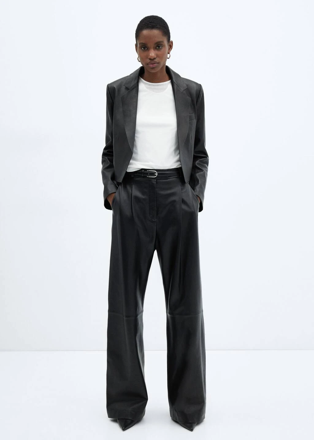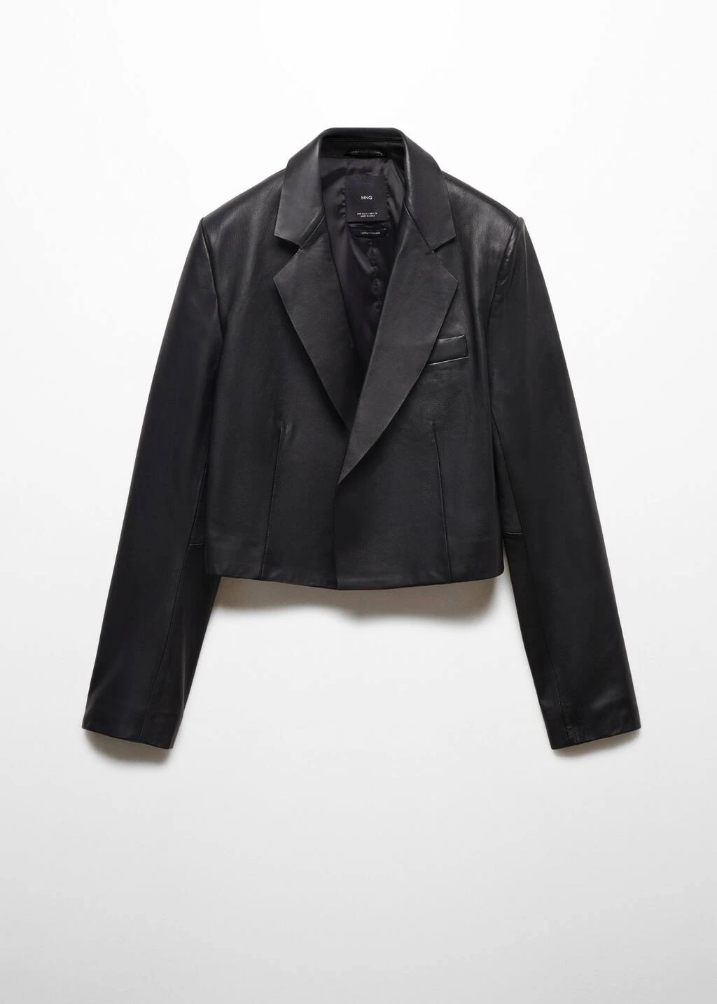 100 % cuir ovin, coupe courte, coupe droite, revers crantes, manches longues, poche passepoilee sur la poitrine, sans fermeture, doublure.Composition: 100% cuir ovin. Doublure: 95% polyester,5% elasthanne