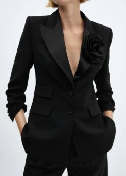 coupe cintree, col a revers satines, manches longues avec poignets boutonnes, poche passepoilee avec rabat decoratif, fermeture a deux boutons sur le devant, bas fendu a l’arriere, maxifleur, doublure, collection fetes et ceremonies.Composition: 100% polyester. Doublure: 100% polyester. Applique: 54% viscose,46% polyester. Tulle: 100% polyamide