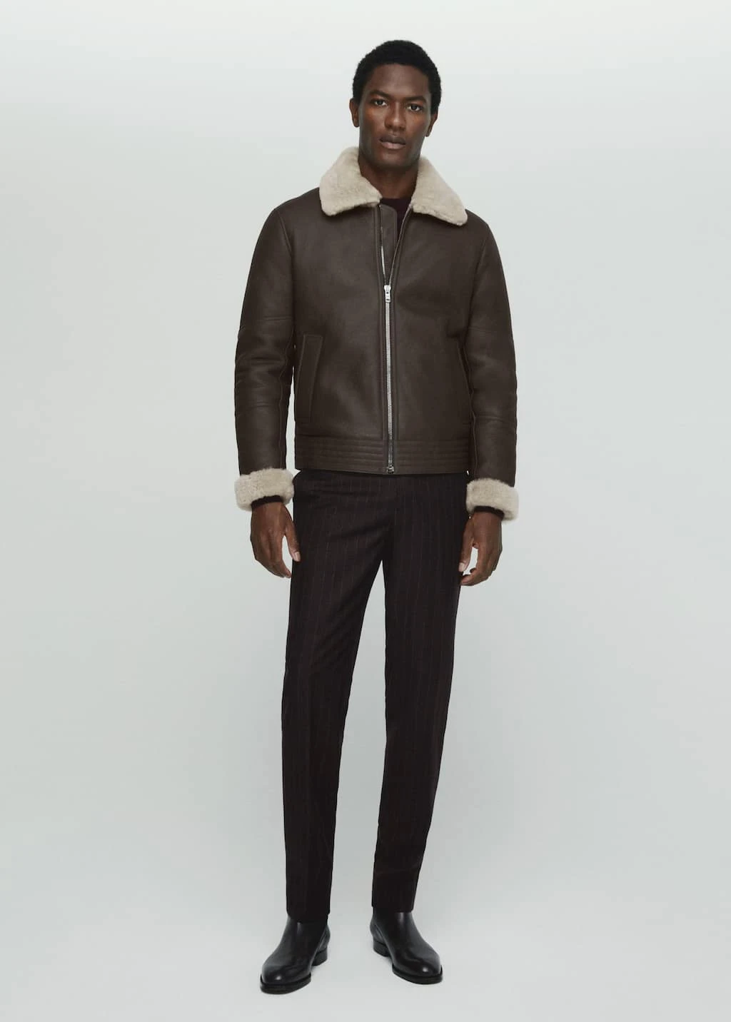 fabrique a 100 % en peau de mouton de premiere qualite, il offre une reinterpretation du manteau a double face avec un design elegant et contemporain, coupe droite, double face, doublure, col et manches en 100 % fourrure de bovin, fermeture zippee metallique a l’avant, deux poches passepoilees a l’avant avec surpiqures, manches longues a revers , bas droit avec surpiqures , le mannequin mesure 190 cm et porte une taille m, une selection de vetements classiques aux lignes minimalistes, fabriques avec des tissus de haute qualite pour une garde-robe intemporelle, polyvalente et eleganteComposition: 100% cuir ovin