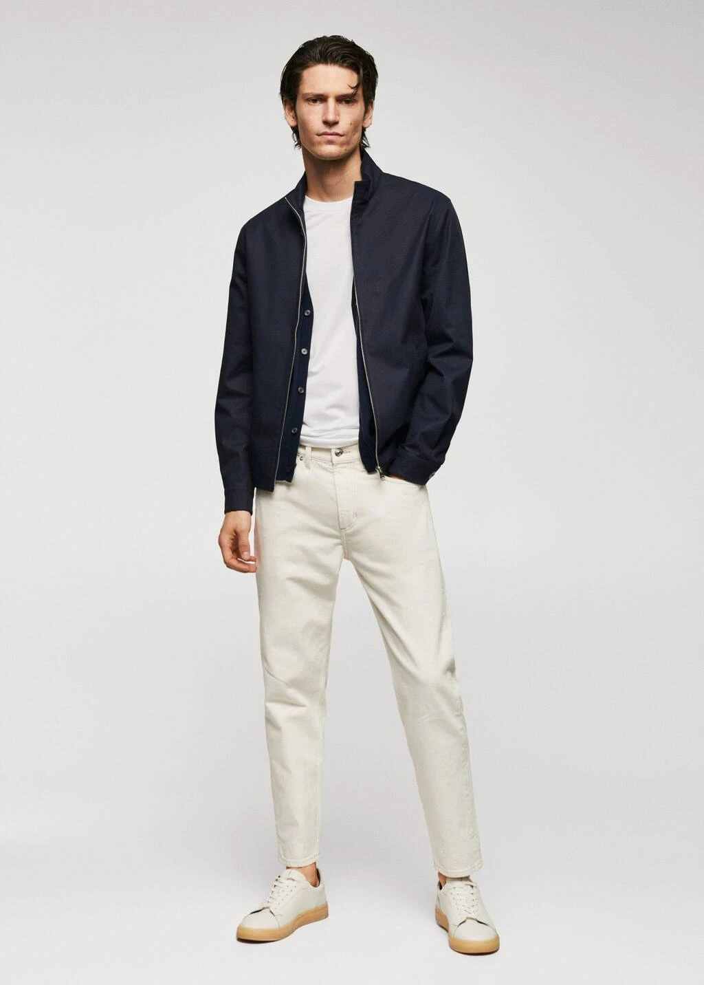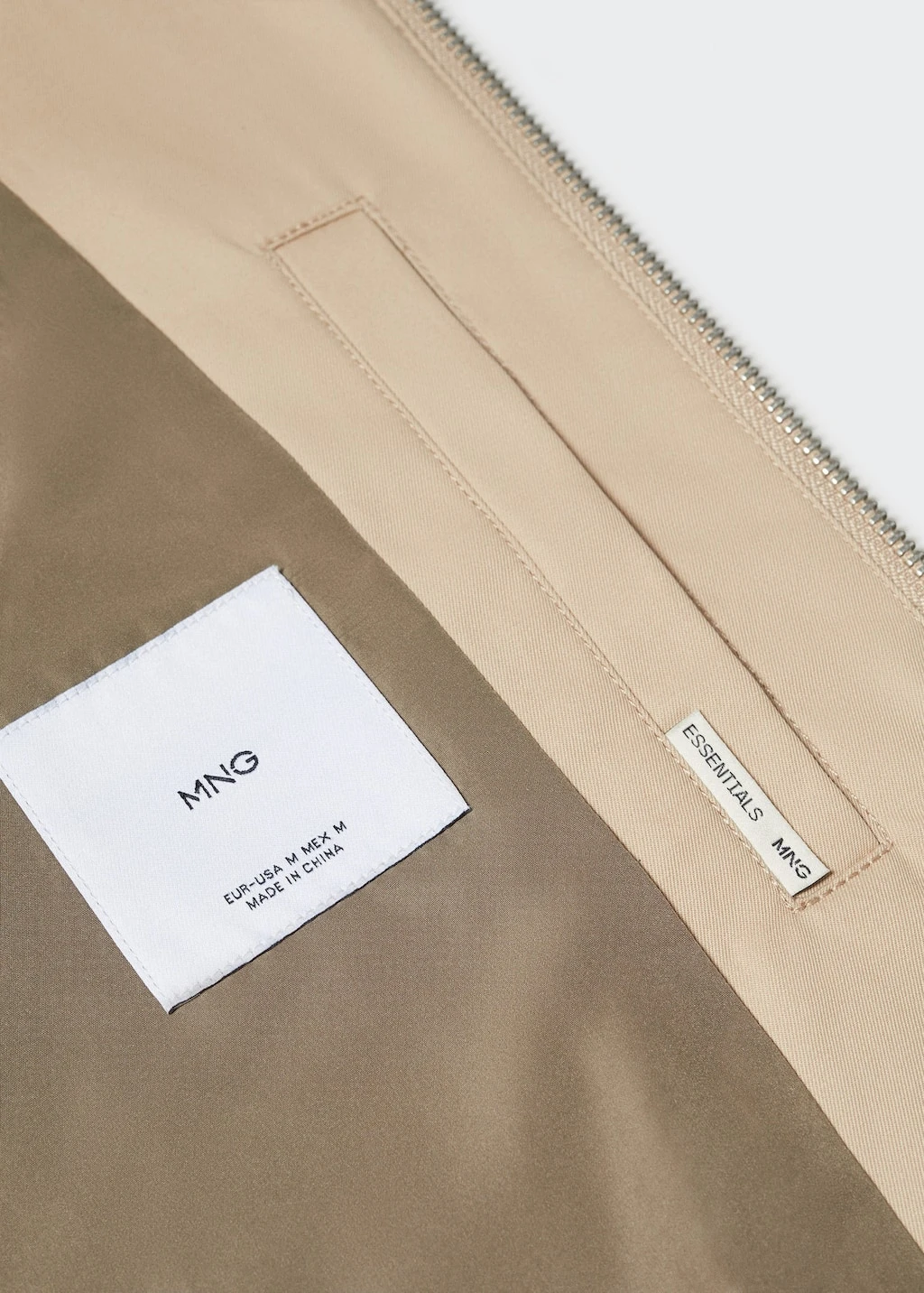 les essentiels : concus pour durer, tissu 100 % coton, style bomber, tissu en coton, coupe courte, col cheminee, manches longues, fermeture eclair a l’avant, manches longues avec poignets boutonnes, fermeture eclair, deux poches laterales, poche interieure, doublure, bas elastique, le mannequin mesure 187 cm et porte une taille m, nous avons renforce nos exigences de qualite en ajoutant de nouveaux tests de resistance a nos vetements. concus avec soin en tenant compte de la confection, ils sont encore plus resistants, polyvalents et intemporels.Composition: 100% coton. Doublure: 100% polyester