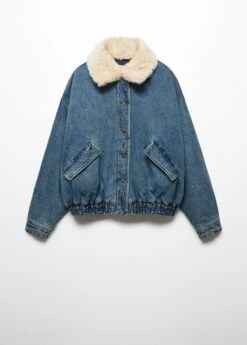 tissu en coton de style jean, style bomber, style oversize, col chemise, col moutonne, col fausse fourrure amovible, manches longues, deux poches plaquees sur le devant, fermeture boutonnee sur le devant, bas elastique, doublureComposition: 100% coton. Doublure: 65% polyester,35% coton