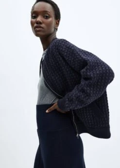 tissu de coton melange, maille moyenne, style bomber, imprime pied-de-poule, manches longues avec poignets elastiques, deux poches laterales, fermeture eclair sur le devantComposition: 45% polyester,35% coton,20% acrylique