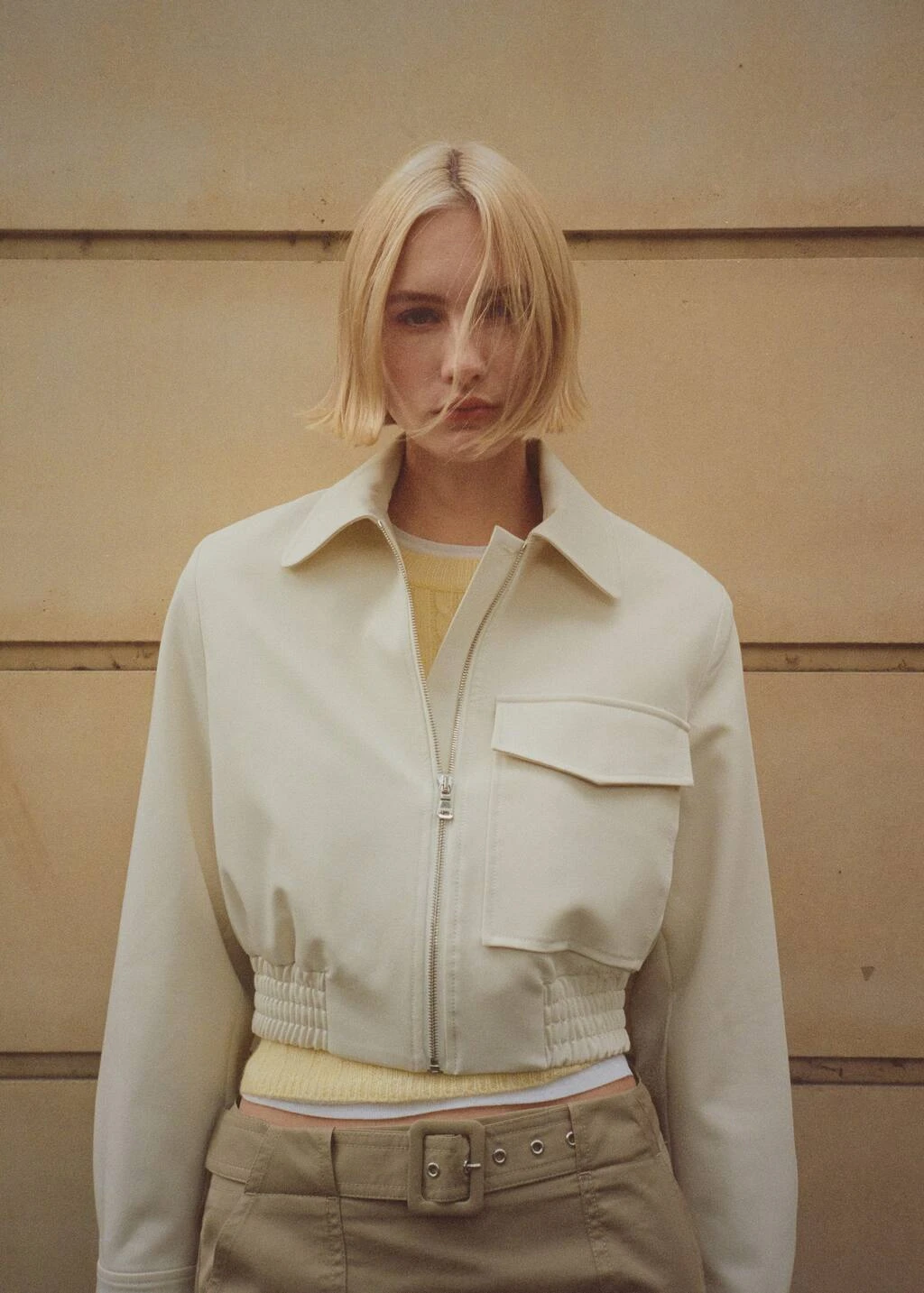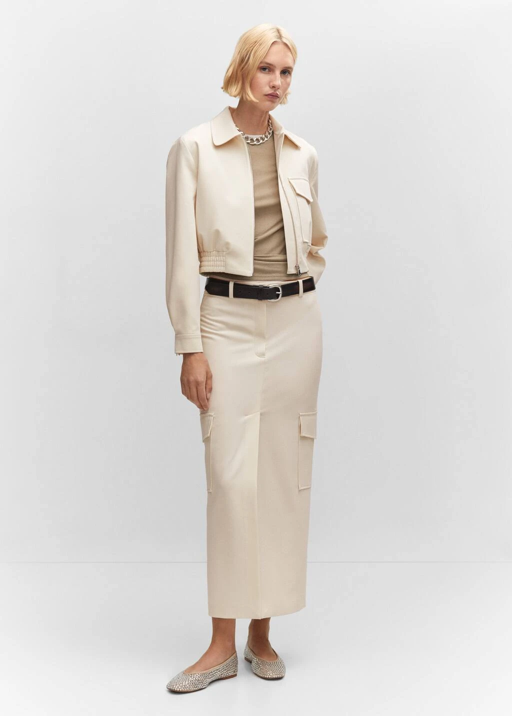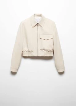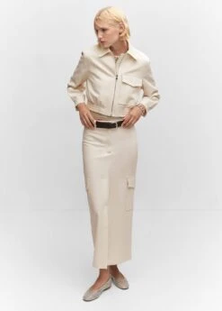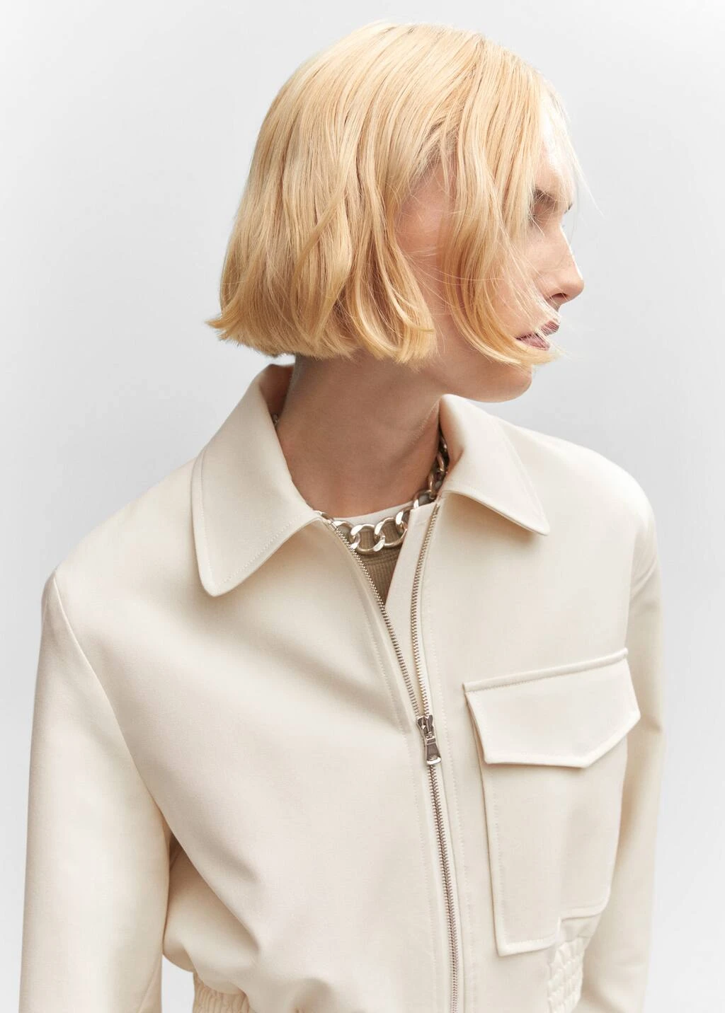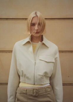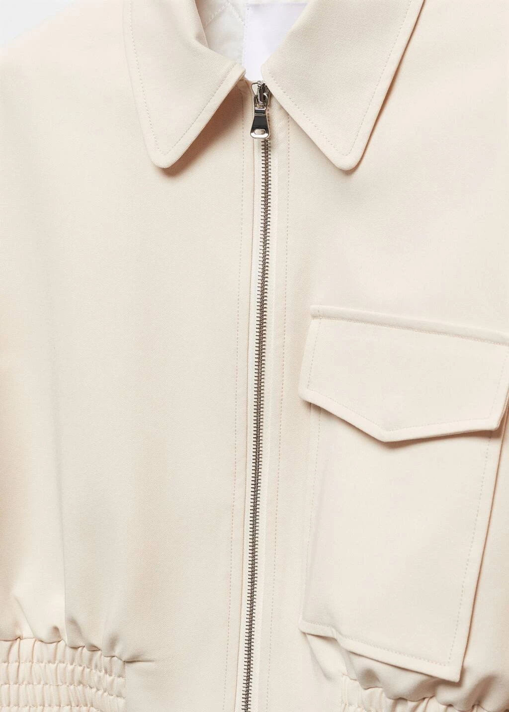 style bomber, design cargo, coupe droite, style crop, col chemise, manches longues boutonnees, poche cargo, fermeture eclair sur le devant, bas elastique, doublureComposition: 76% polyester,17% viscose,7% elasthanne. Doublure: 52% viscose,48% polyester. Doublure manches: 52% viscose,48% polyester. Doublure poches: 52% viscose,48% polyester