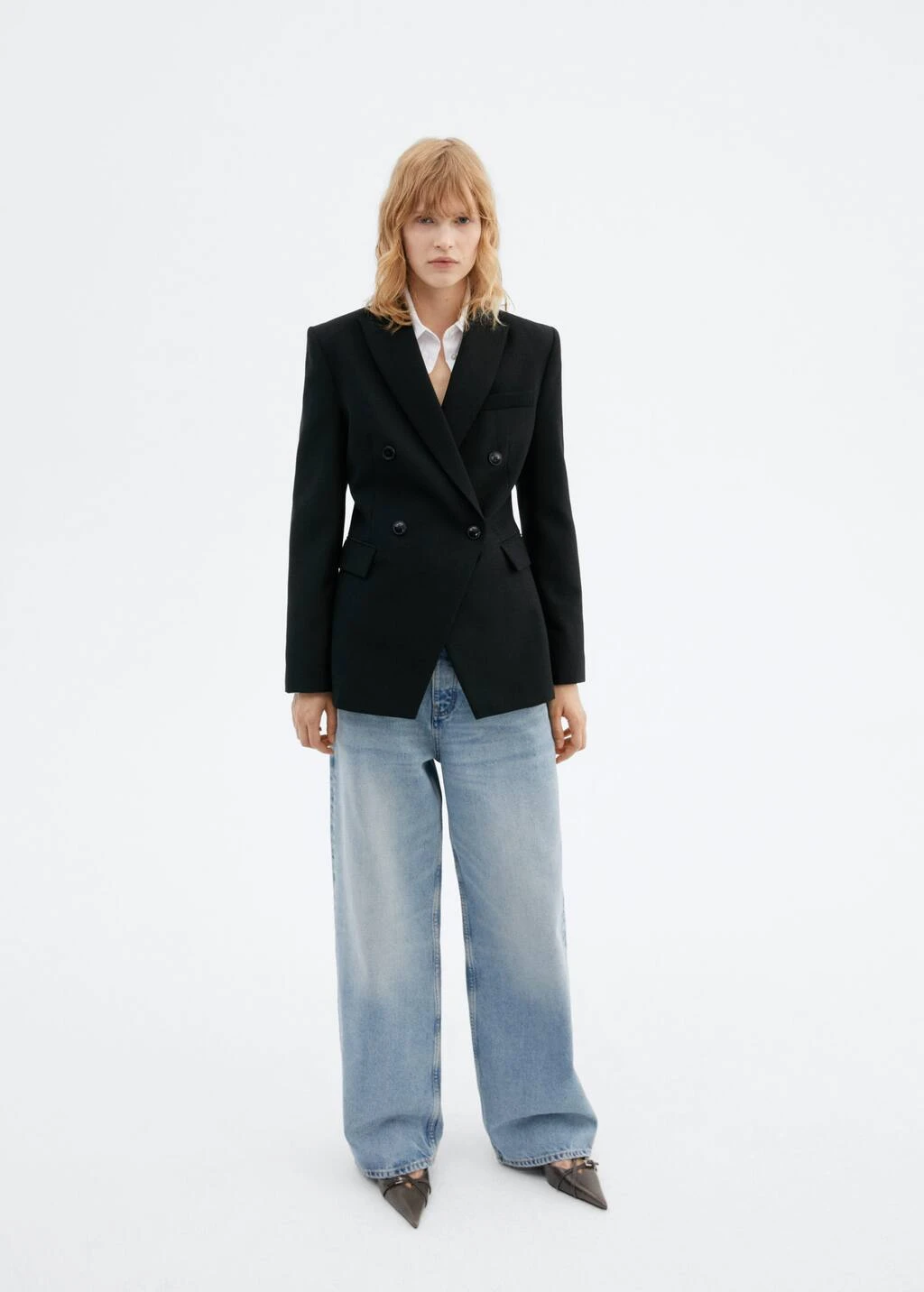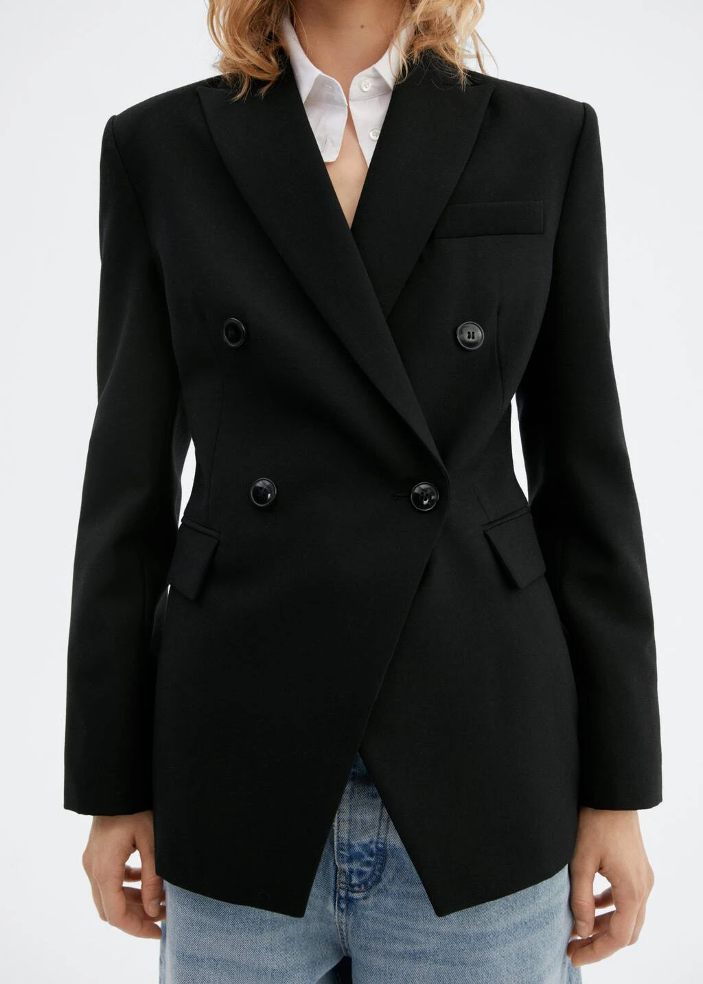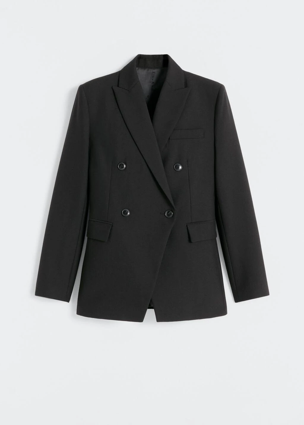 collection selection, tissu de laine melange, coupe cintree, col en v avec rabat, manches longues, poche passepoilee sur la poitrine, deux poches passepoilees sur les cotes, fermeture avant a boutons croises, coutures decoratives, doublure, total look, une selection de pieces qui vous accompagneront lors du retour au bureau. confectionnee avec des matieres de qualite pour creer une garde-robe feminine et contemporaine pour votre quotidien.