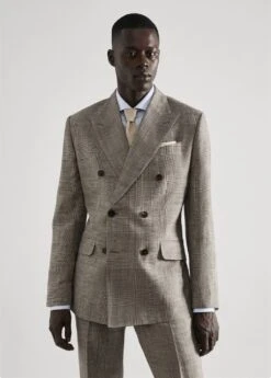 slim-fit, tissu en lin melange, coupe standard, imprime a carreaux prince de galles, revers en pointe, fermeture avant a boutons croises, manches longues avec poignets boutonnes, poche plaquee sur la poitrine, deux poches a rabat a lâavant, double ouverture au dos, bas droit, poches interieures, doublure, le mannequin mesure 190 cm et porte une taille 50, avec sa coupe legerement ajustee, le costume slim-fit est un peu plus pres du corps que le modele regular-fit. ideal pour ceux qui veulent plus quâun costume de coupe classique, sans pour autant avoir une silhouette tres cintree. le costume slim-fit se decline en differents modeles : croise, en lin, en laine et classique, desormais en polyester recycle. associez-le a un pull ou un t-shirt pour un look plus decontracte, ou a une chemise classique et une cravate pour les occasions speciales.Composition: 65% viscose,35% lin. Doublure: 52% viscose,48% polyester. Doublure manches: 70% viscose,30% polyester