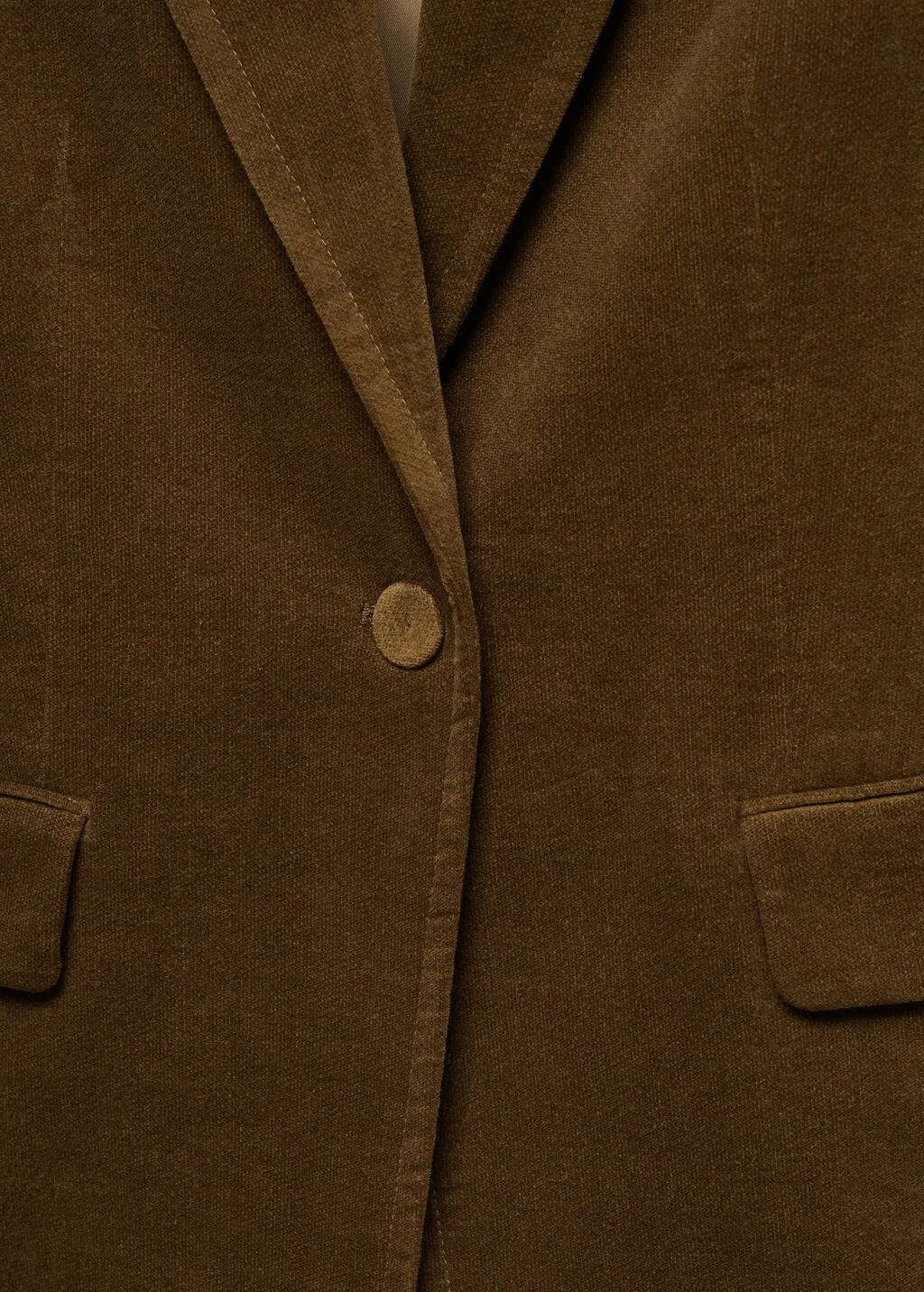 100 % coton, tissu velveton, coupe longue, coupe cintree, col en v avec rabat, revers crantes, manches longues avec poignets boutonnes, deux poches passepoilees et a rabat sur le devant, poche passepoilee sur la poitrine, fermeture a bouton sur le devant, doublure, total lookComposition: 100% coton. Doublure: 55% polyester,45% viscose. Doublure manches: 100% polyester. Lisiere: 100% polyester
