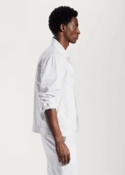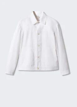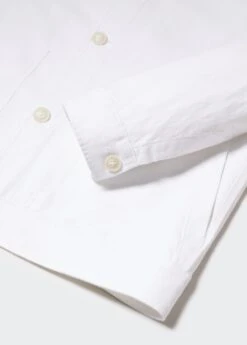 tissu de coton et lin melange, tissu leger, regular-fit, coupe droite, details surpiques, col chemise, fermeture a boutons sur le devant, manches longues boutonnees, poche plaquee sur le devant, bas droit, le mannequin mesure 190 cm et porte une taille m, ensemble avec pantalon disponibleComposition: 57% coton,43% lin