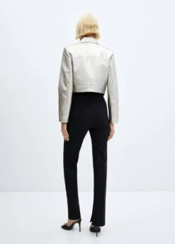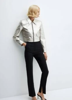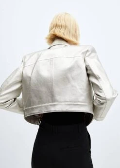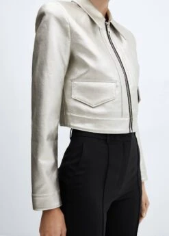 finition metallisee, coupe droite, style crop, col chemise, manches longues, deux poches a rabat a lâavant, fermeture eclair sur le devant, doublureComposition: 100% polyester. Doublure: 100% polyester. RevĂȘtement: 100% polyurethane