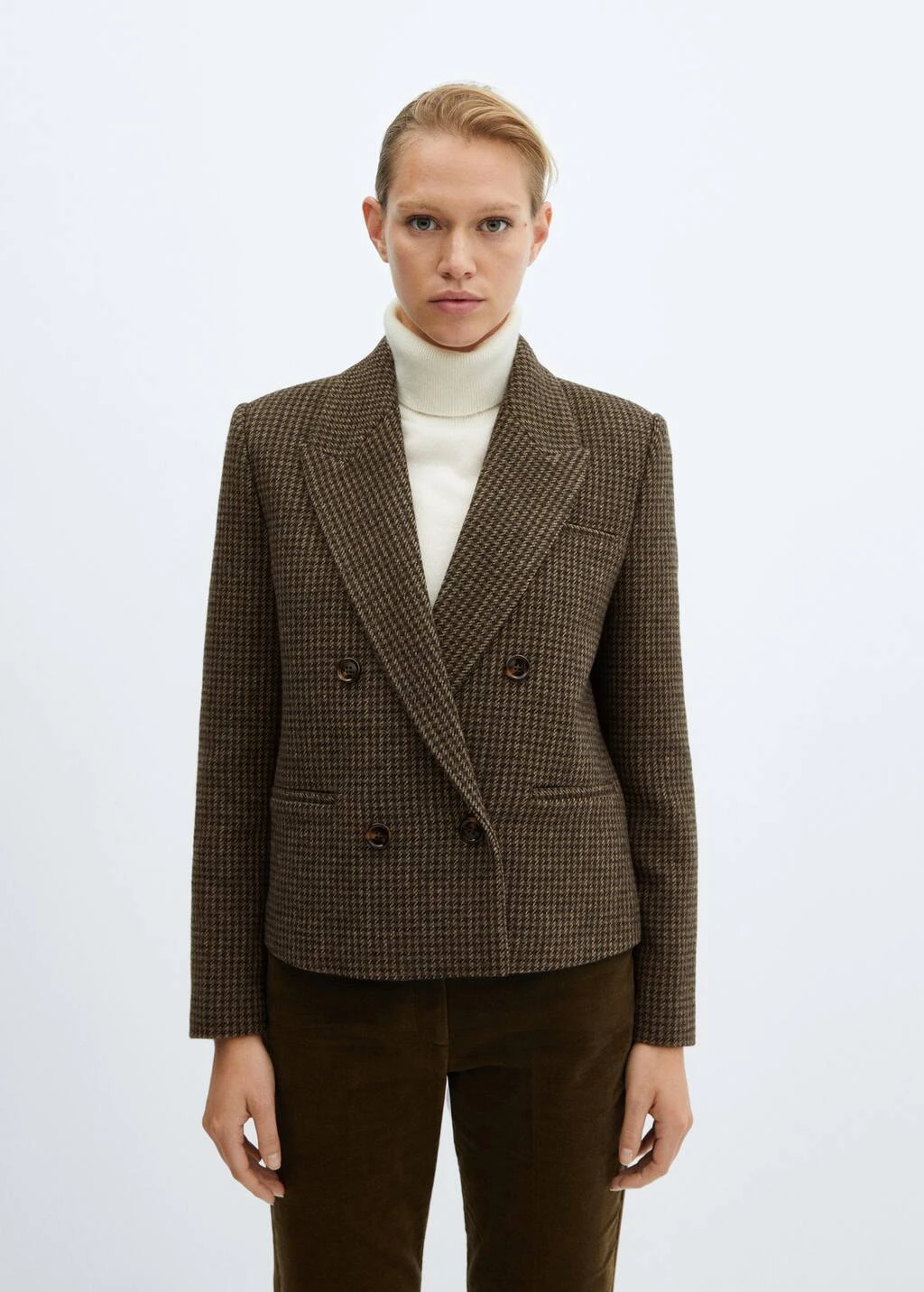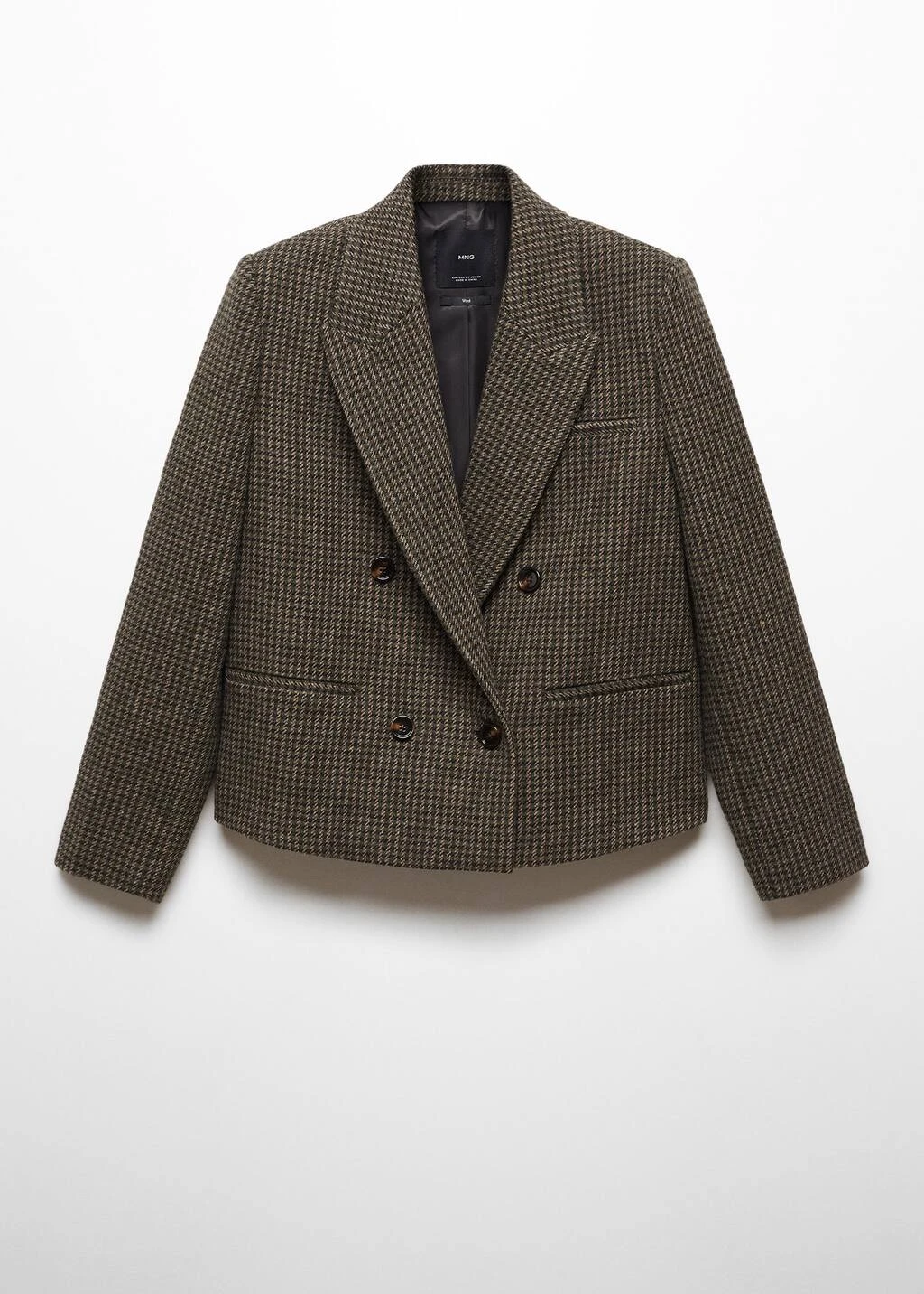 tissu de laine melange, style crop, coupe droite, col en v avec rabat, manches longues, deux poches passepoilees a lâavant, poche passepoilee sur la poitrine, fermeture a double boutonnage, doublureComposition: 56% laine,40% polyester,2% acrylique,1% polyamide,1% viscose. Doublure: 100% polyester. Lisiere: 100% polyester