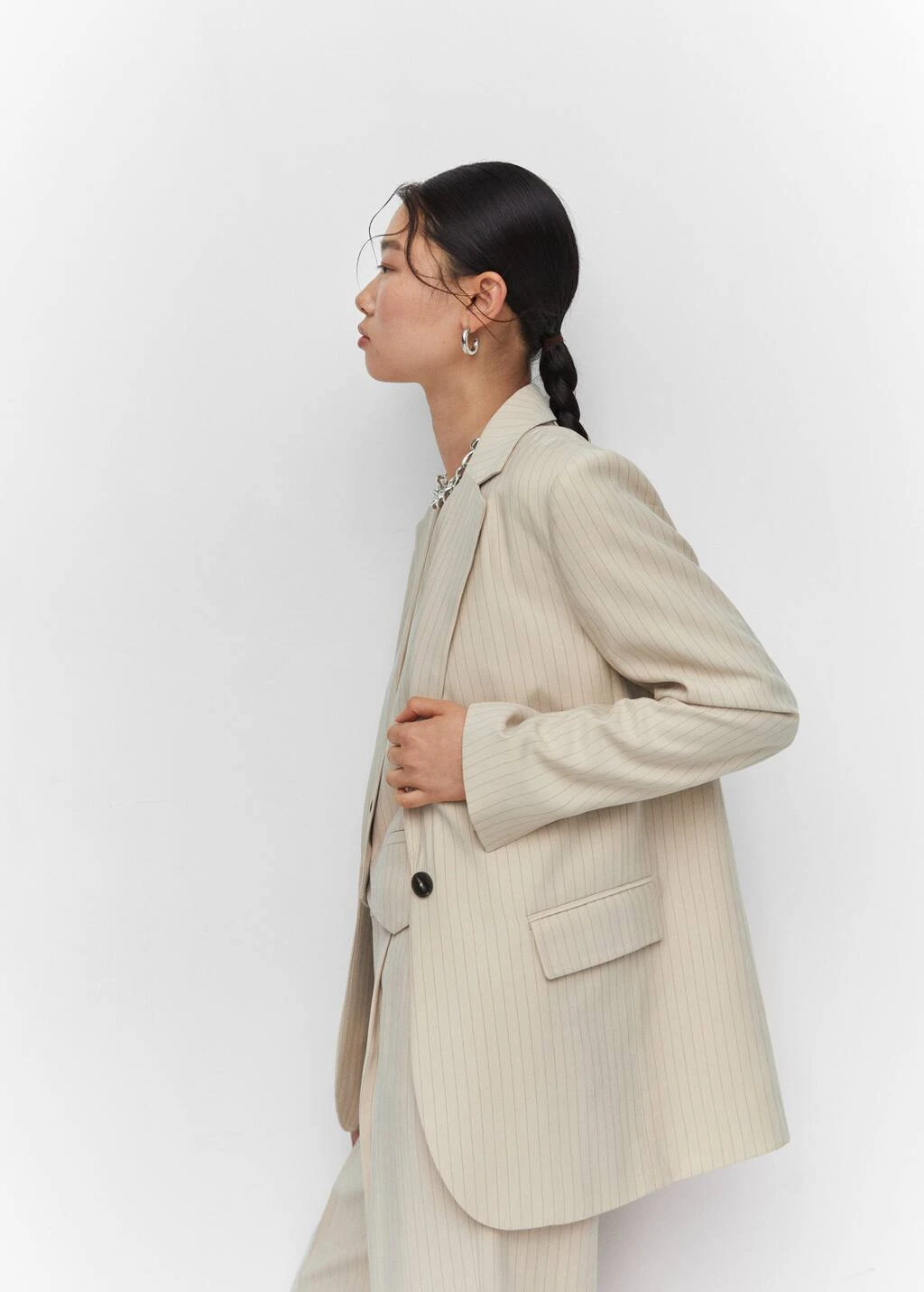 tissu en viscose recyclee melangee, droit, coupe longue, fines rayures, col en v avec rabat, manches longues, deux poches a rabat a lâavant, fermeture a bouton sur le devant, doublure, total lookComposition: 88% viscose recyclĂ©,12% polyester. Doublure: 96% polyester,4% elasthanne