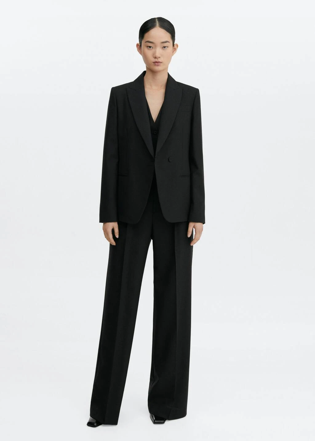 collection selection, tissu en laine, regular-fit, col a revers, manches longues avec poignets boutonnes, deux poches passepoilees sur les cotes, pinces sur le devant, doublure, fermeture boutonnee sur le devant, une selection de pieces qui vous accompagneront lors du retour au bureau. confectionnee avec des matieres de qualite pour creer une garde-robe feminine et contemporaine pour votre quotidien.