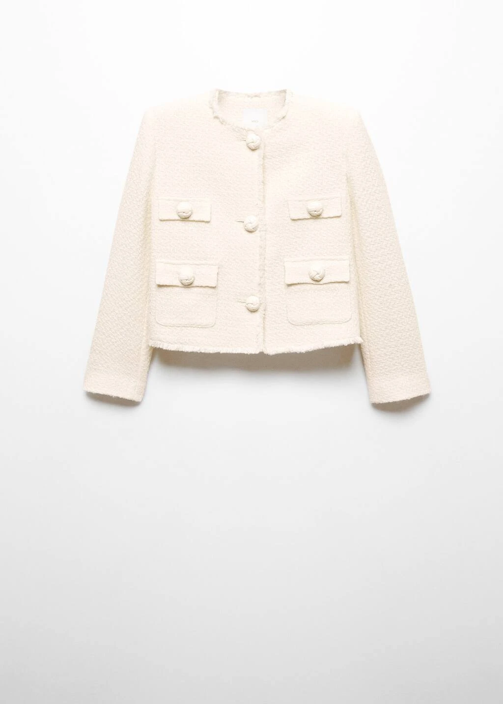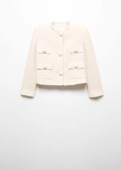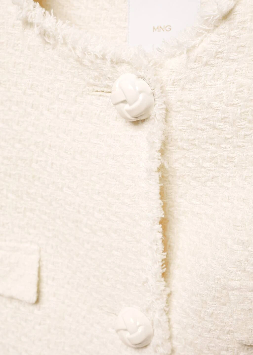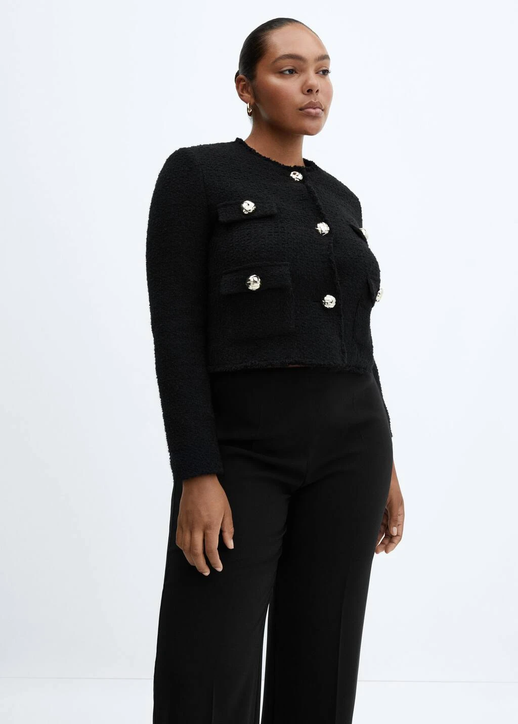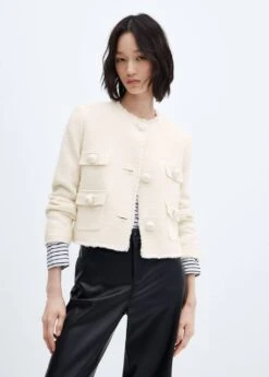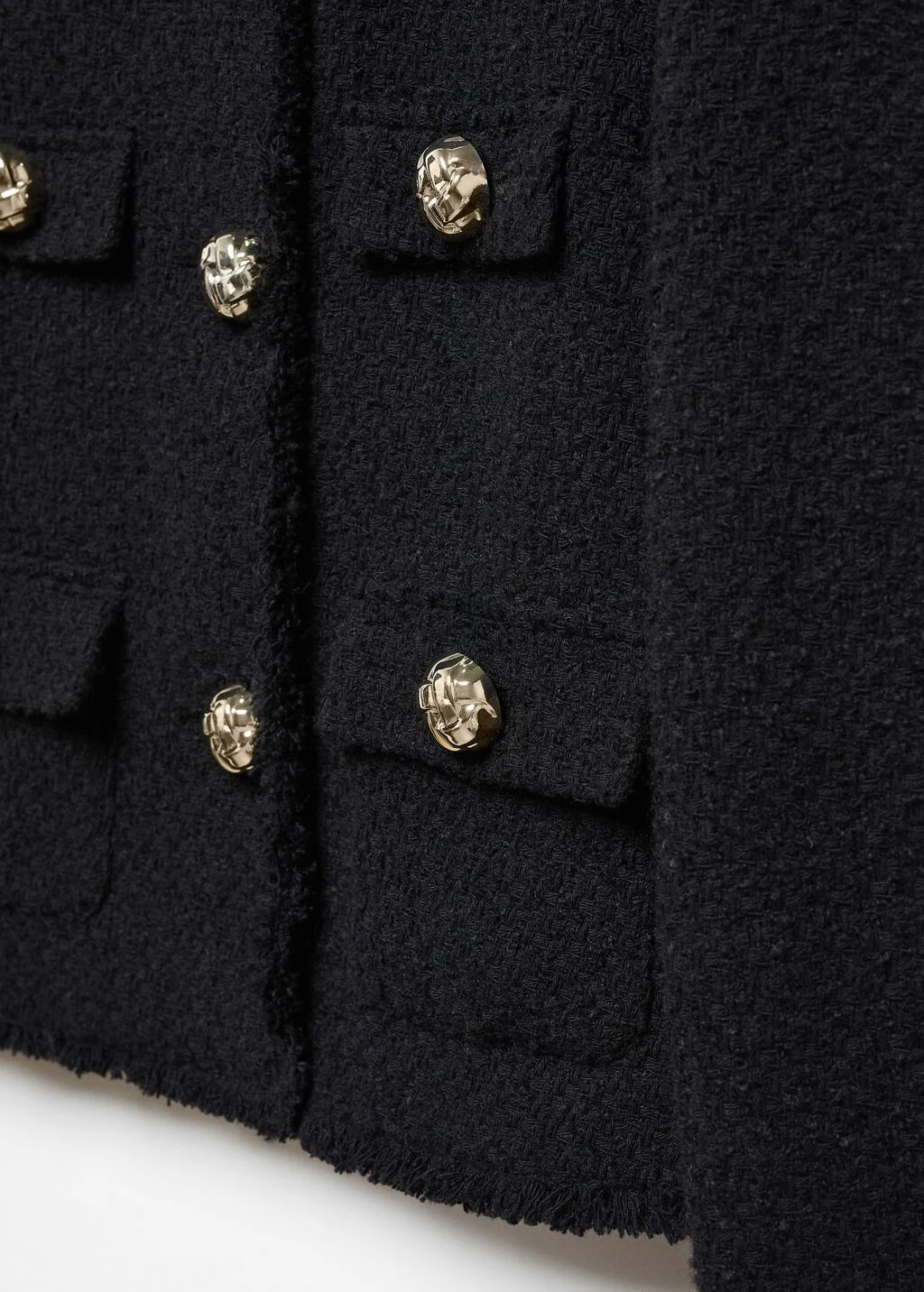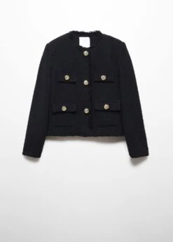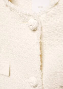 tissu tweed, tissu de coton melange, coupe droite, coupe courte, col rond, manches longues, quatre poches plaquees a l’avant, fermeture boutonnee sur le devant, boutons metalliques, boutons decoratifs, bords effiloches, doublure, disponible plus, collection fetes et ceremoniesComposition: 49% coton,40% polyester,10% laine,1% viscose. Doublure: 100% polyester. Doublure manches: 100% polyester