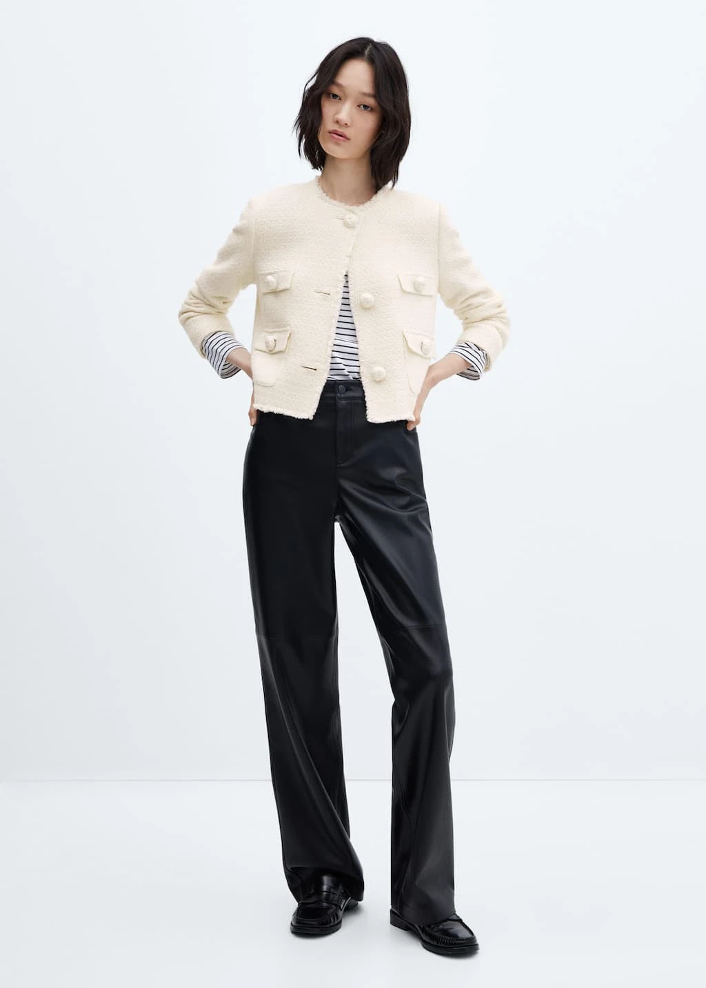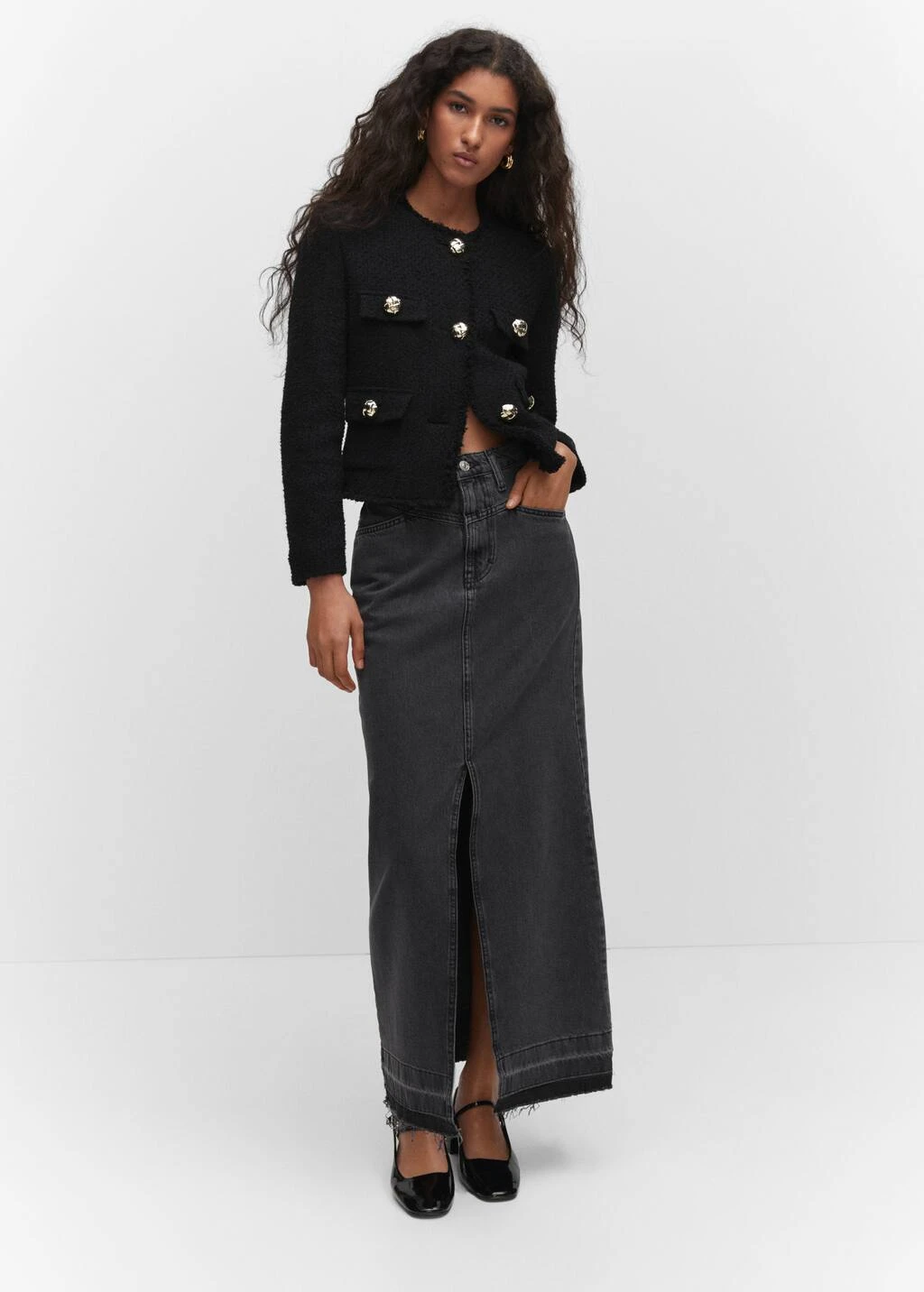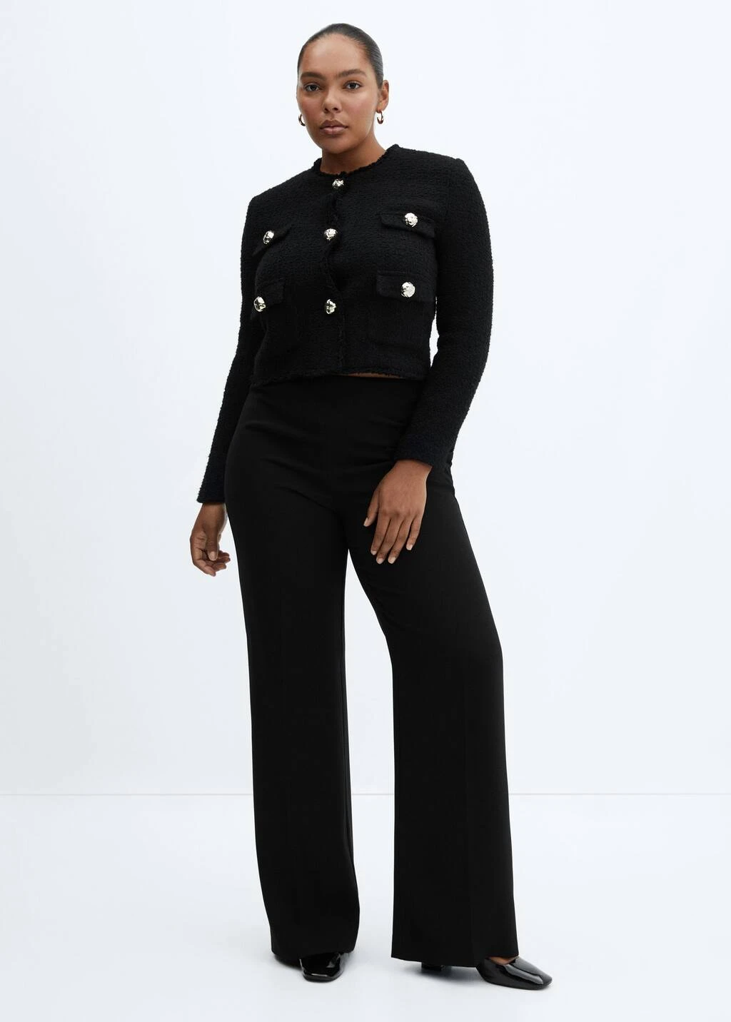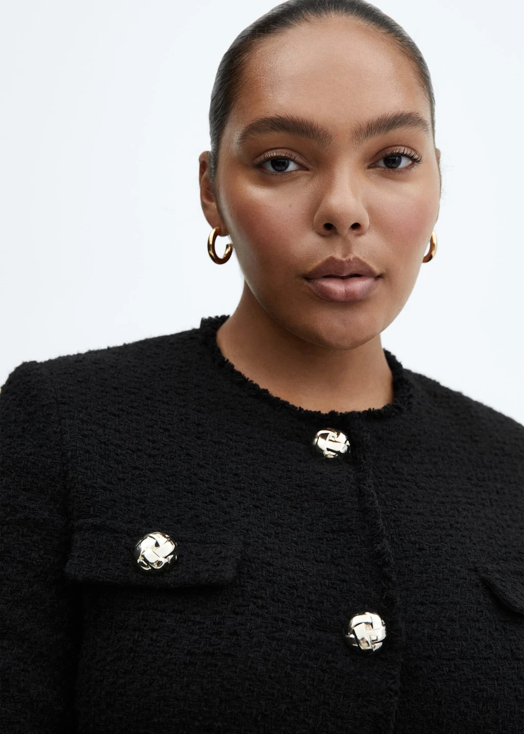 tissu tweed, tissu de coton melange, coupe droite, coupe courte, col rond, manches longues, quatre poches plaquees a l’avant, fermeture boutonnee sur le devant, boutons metalliques, boutons decoratifs, bords effiloches, doublure, disponible plus, collection fetes et ceremoniesComposition: 49% coton,40% polyester,10% laine,1% viscose. Doublure: 100% polyester. Doublure manches: 100% polyester
