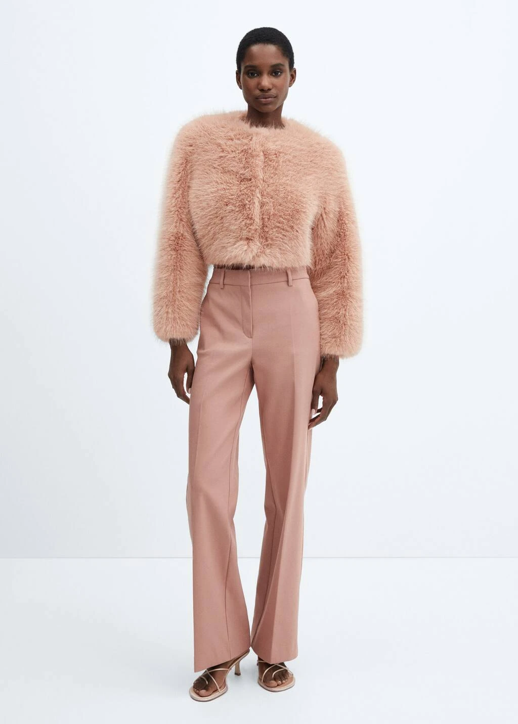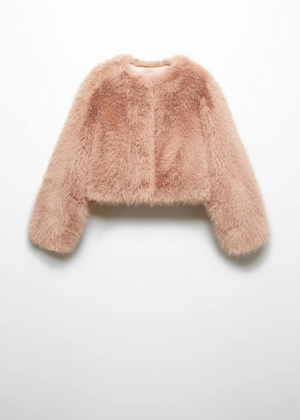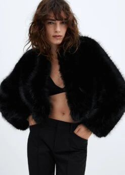 effet fourrure, coupe courte, coupe droite, manches longues, fermeture crochet sur le devant, doublure, collection fetes et ceremonies.Composition: 100% polyester. Doublure: 55% polyester,45% viscose