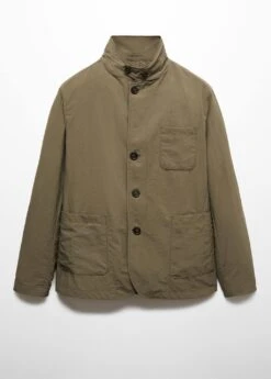 regular-fit, tissu technique leger, hydrofuge : tissu technique resistant a l’eau, col cheminee a bouton, fermeture boutonnee sur le devant, poche plaquee sur la poitrine, deux poches plaquees sur le devant, manches longues, bas droit, sans doublure interieure, le mannequin mesure 190 cm et porte une taille mComposition: 100% polyamide