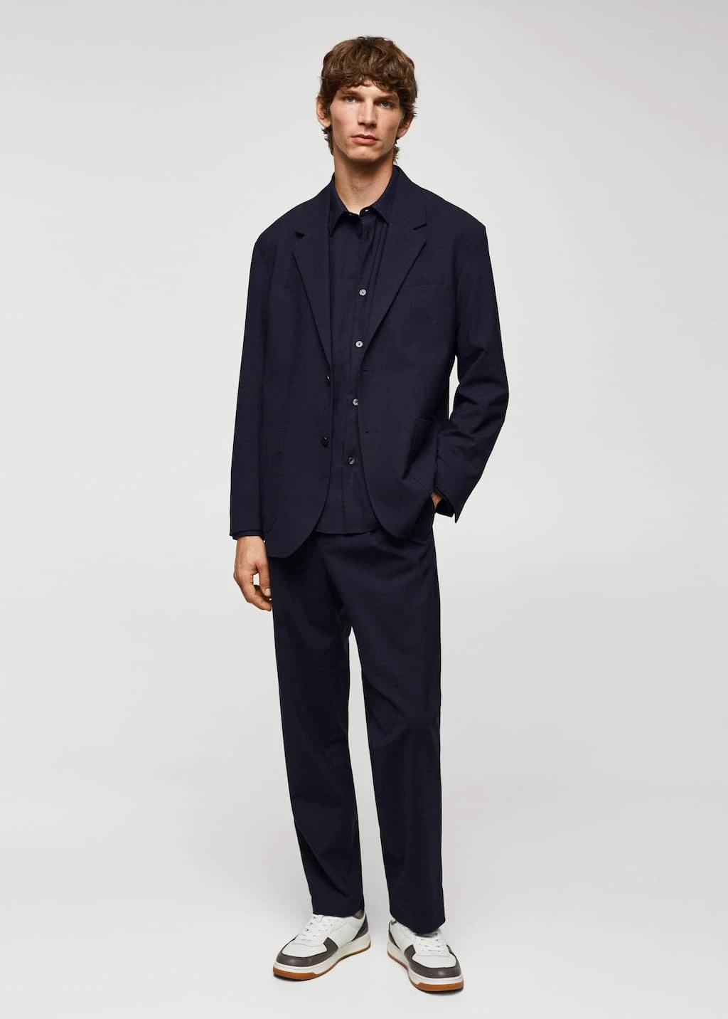 relaxed-fit : silhouette droite et ample pour plus de confort , revers crantes a boutonniere, manches longues avec fermeture a poche dissimulee, poche passepoilee sur la poitrine, deux poches plaquees sur le devant, fermeture a boutons sur le devant, bas fendu a l’arriere, doublure, poches interieures, le mannequin mesure 190 cm et porte une taille 50, ensemble disponible en total lookComposition: 54% polyester,41% laine,5% elasthanne. Doublure: 52% viscose,48% polyester