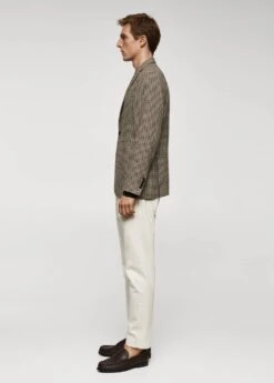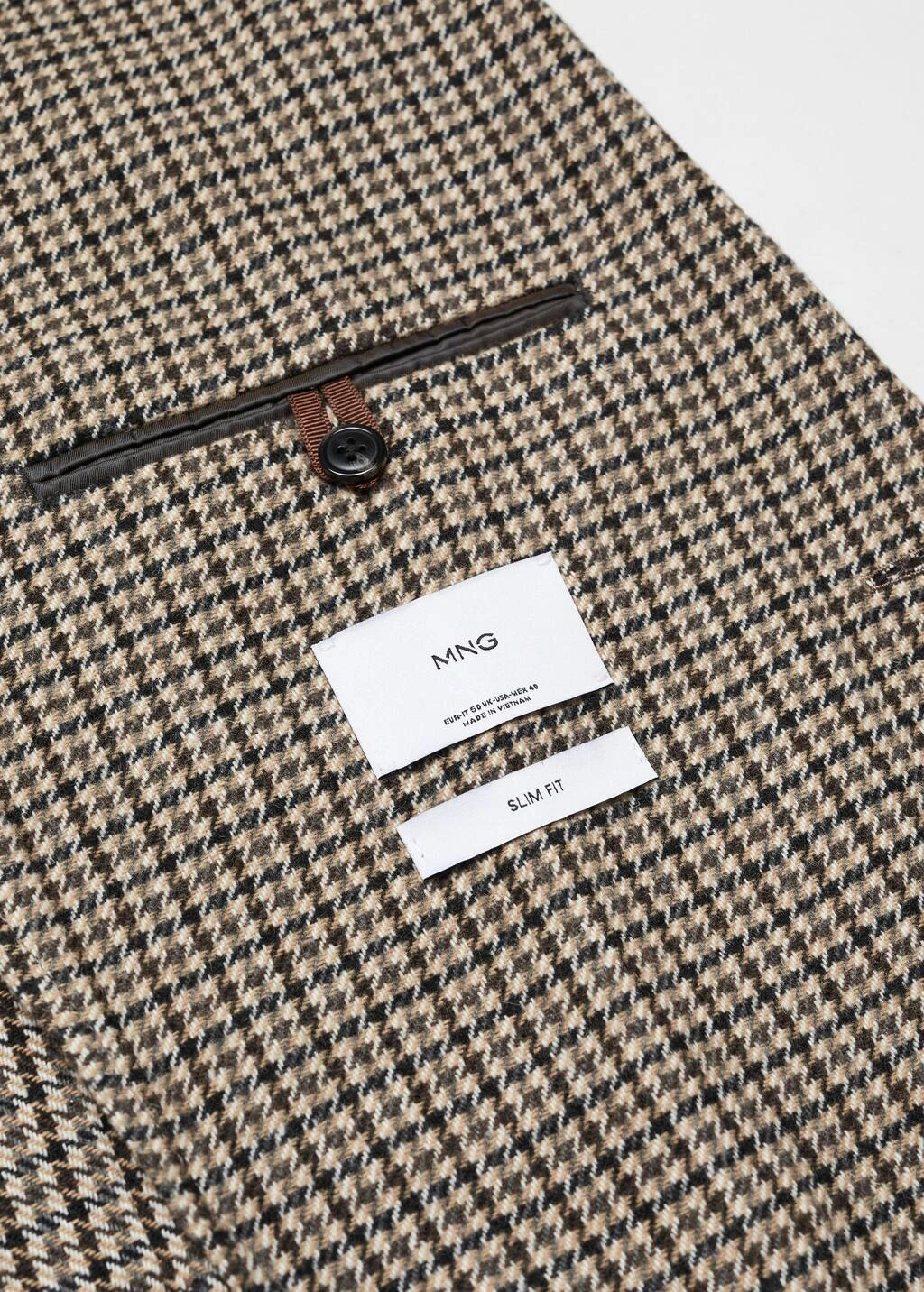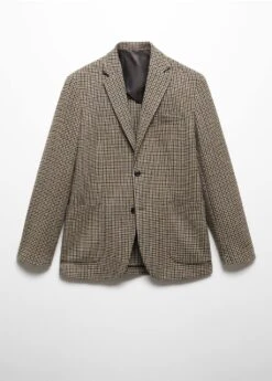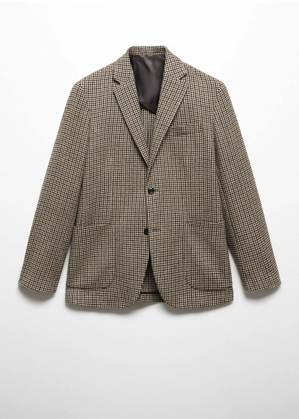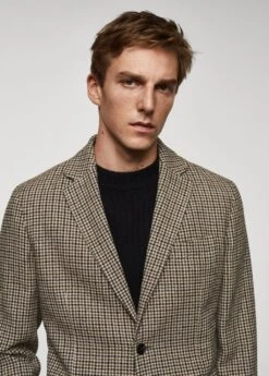 tissu en laine et polyester recycle melanges, slim-fit, imprime micro pied-de-poule, col a revers, poche passepoilee sur la poitrine, deux poches plaquees sur le devant, fermeture a boutons sur le devant, double ouverture au dos, poche interieure avec fermeture a bouton, doublure partielle, le mannequin mesure 190 cm et porte une taille 50Composition: 71% polyester,25% laine,2% acrylique,2% polyamide. Doublure: 55% polyester,45% viscose