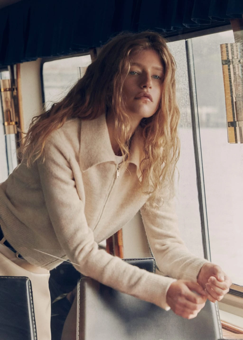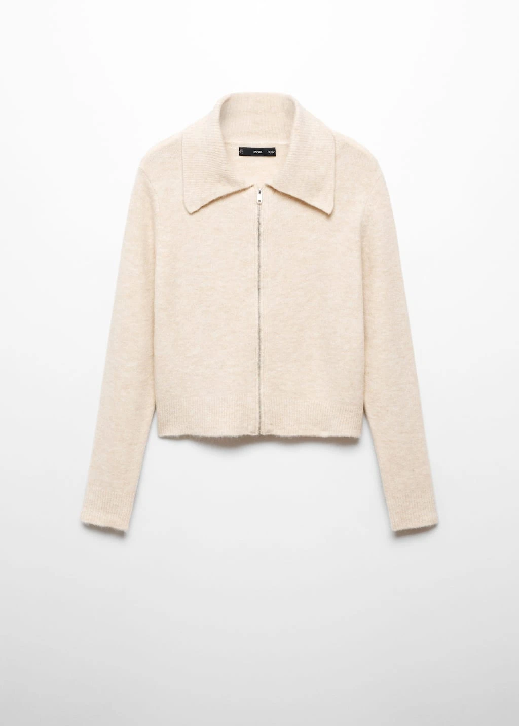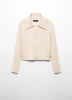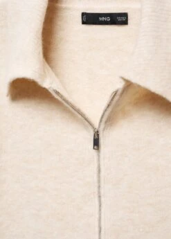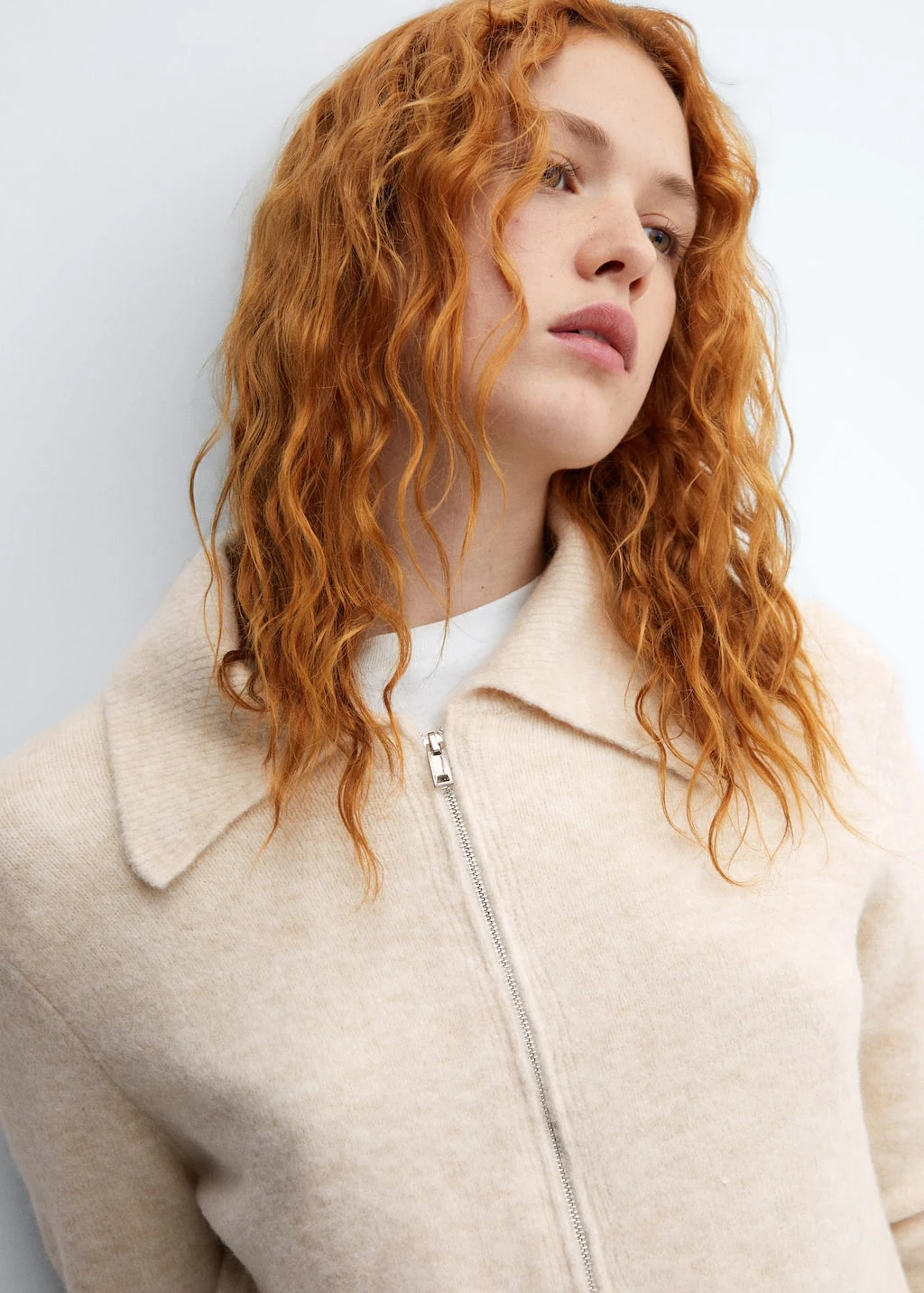 maille moyenne, coupe droite, col chemise, manches longues, fermeture eclair a lâavant, bords coteles au niveau du col, des manches et sur le basComposition: 68% acrylique,27% polyamide,3% laine,2% elasthanne