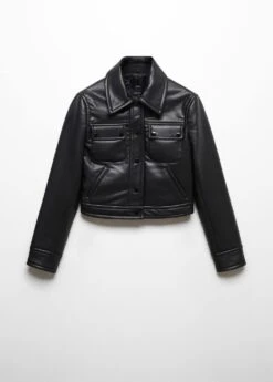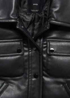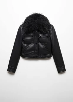 similicuir, matelasse, coupe courte, col chemise, col en fourrure synthetique demontable, manches longues, deux poches laterales, deux poches a rabat avec bouton sur la poitrine, fermeture a boutons sur le devant, doublureComposition: 100% polyester. Doublure: 100% polyester. Col: 100% polyester. Rembourrage: 100% polyester. RevĂŞtement: 100% polyurethane