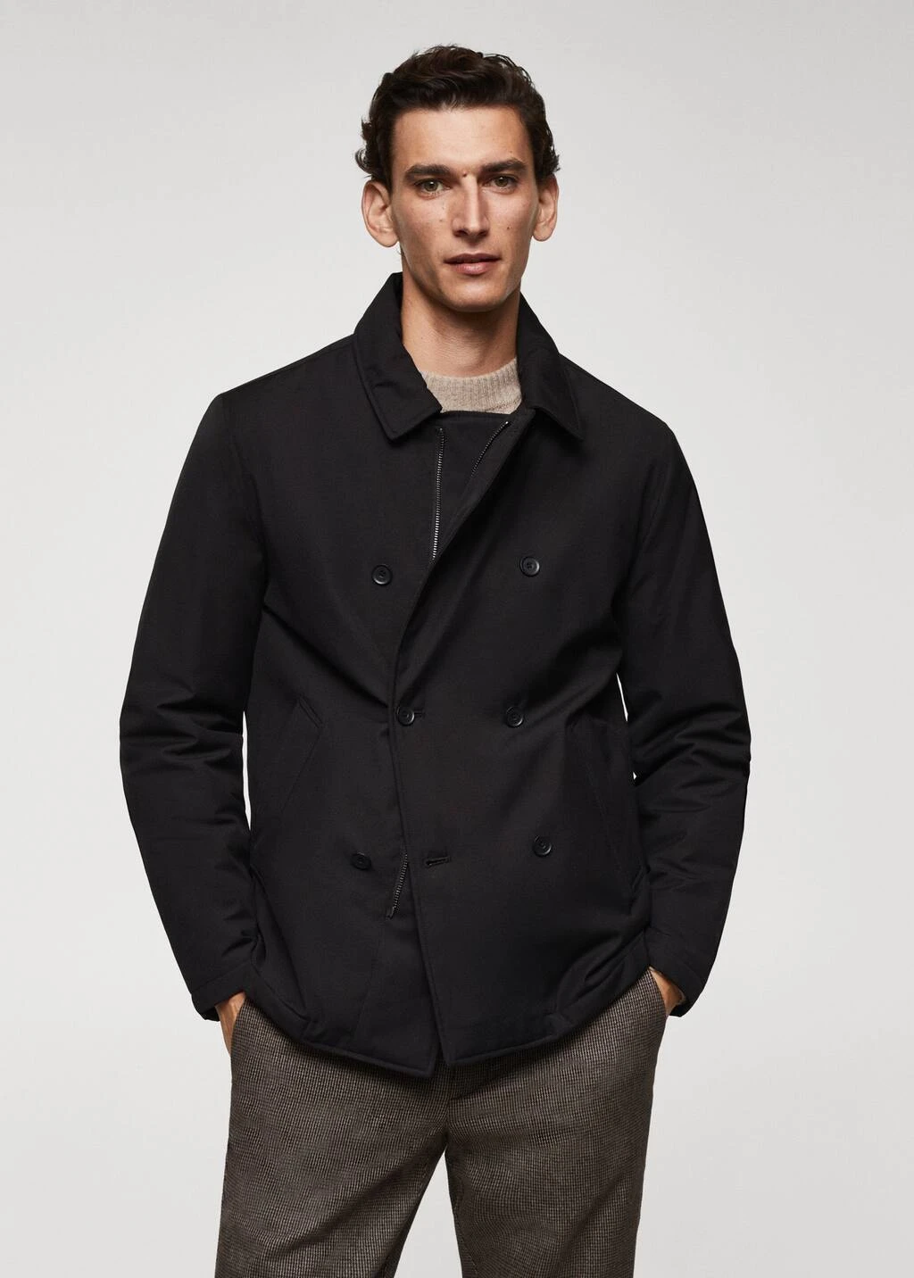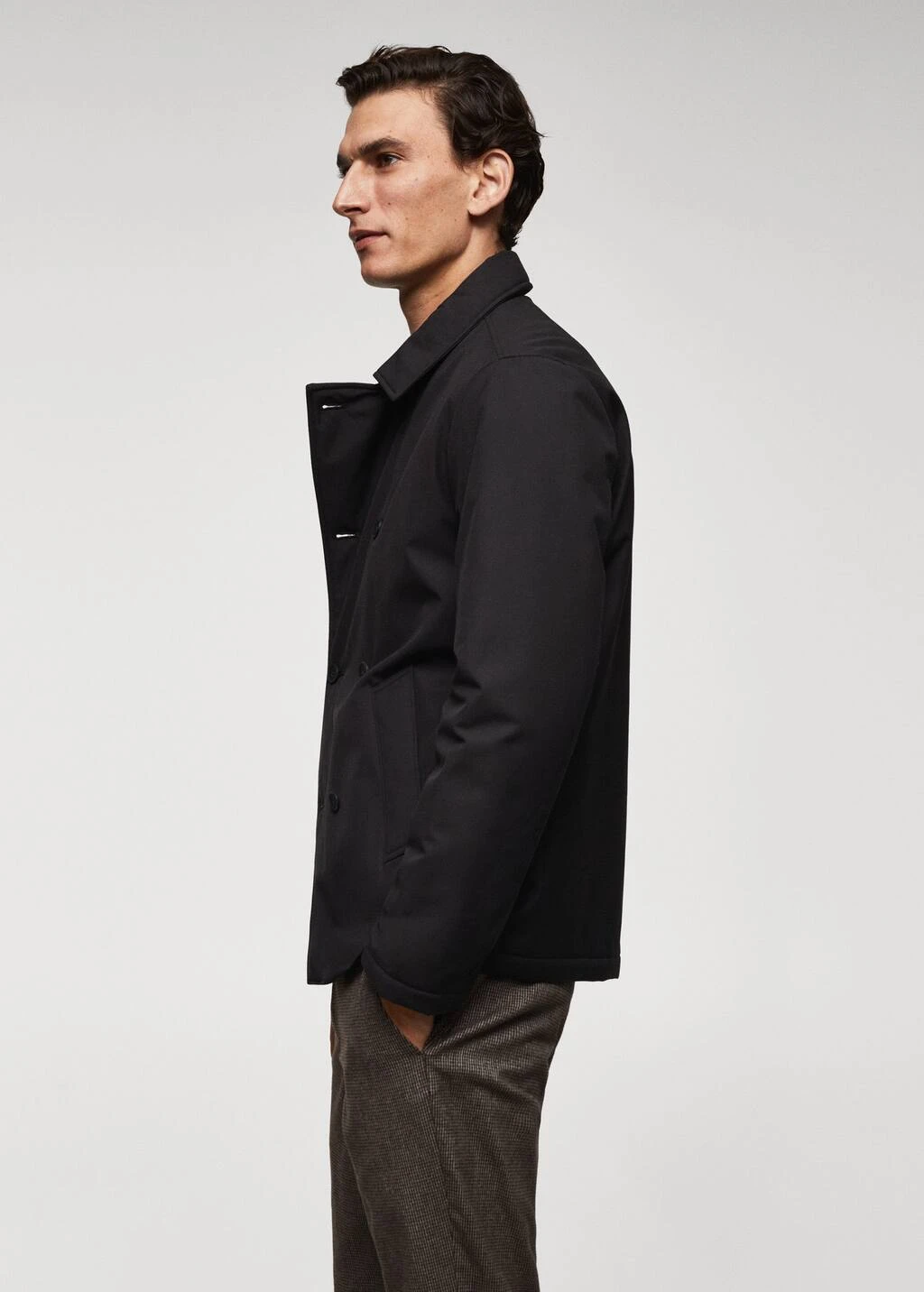thermoregulateur : regule la temperature du corps, hydrofuge : tissu technique resistant a lâeau, tissu impermeable, tissu en polyester recycle, rembourrage en polyester recycle, regular-fit, matelasse, col classique, fermeture avant a double boutonnage et fermeture eclair, manches longues, poche interieure avec fermeture a bouton, bas droit, le mannequin mesure 190 cm et porte une taille mComposition: 70% polyester,30% viscose. Doublure: 100% polyester. Rembourrage: 100% polyester