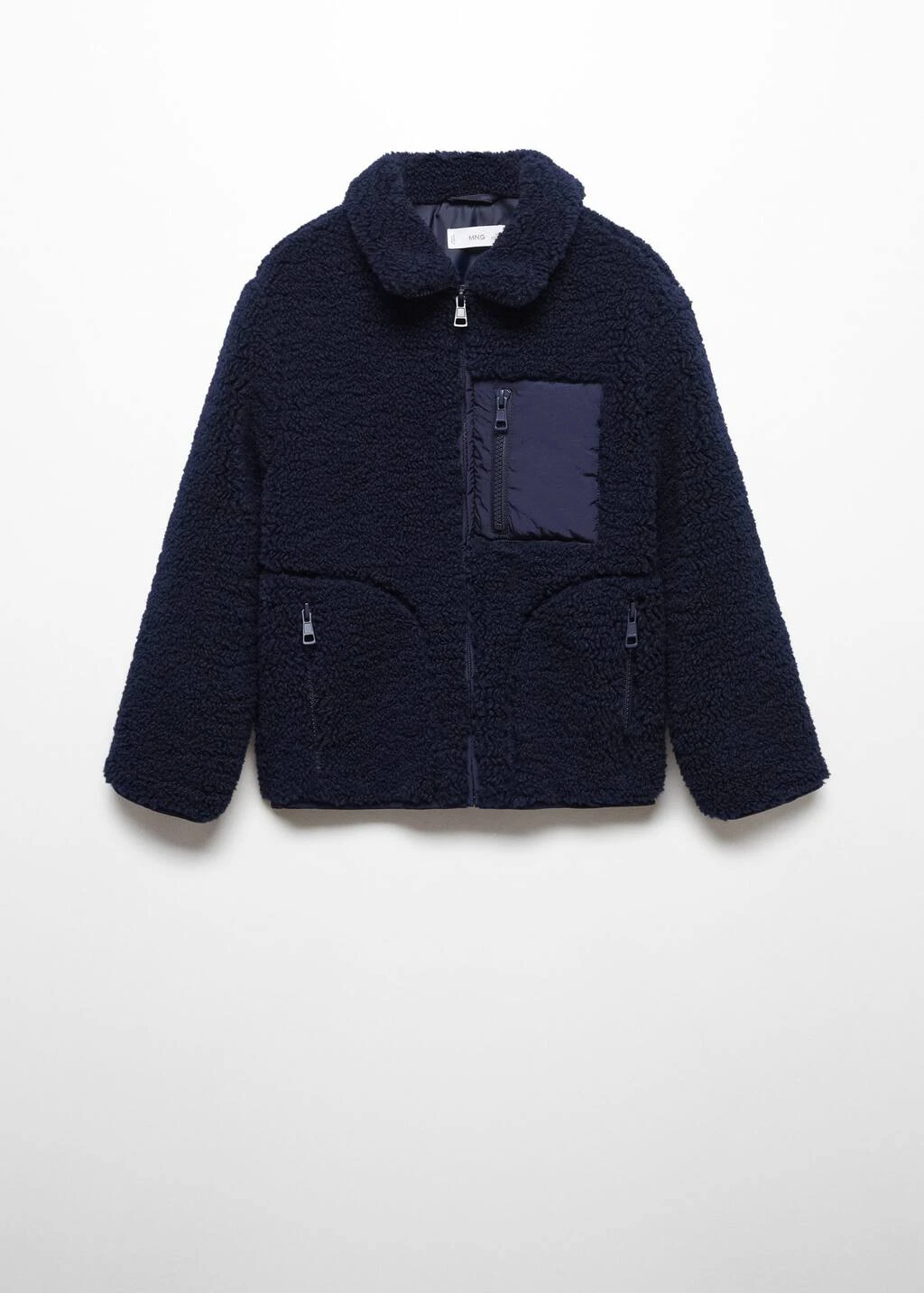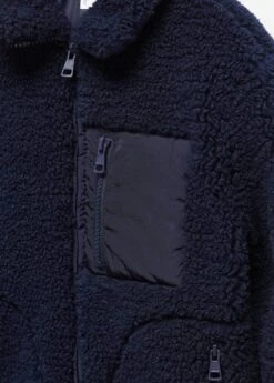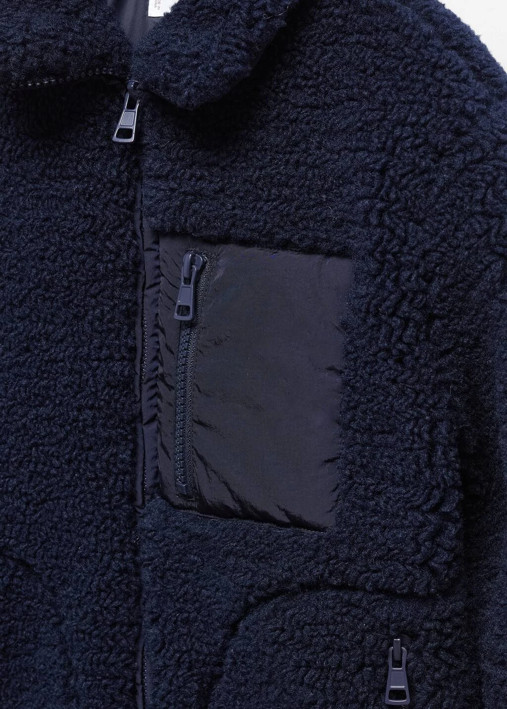 tissu mouton, droit, col cheminee, manches longues, poche zippee sur la poitrine, trois poches zippees, fermeture frontale, fermeture eclairComposition: 100% polyester. Doublure: 100% polyester. Appliques: 100% polyamide. Rembourrage: 100% polyester