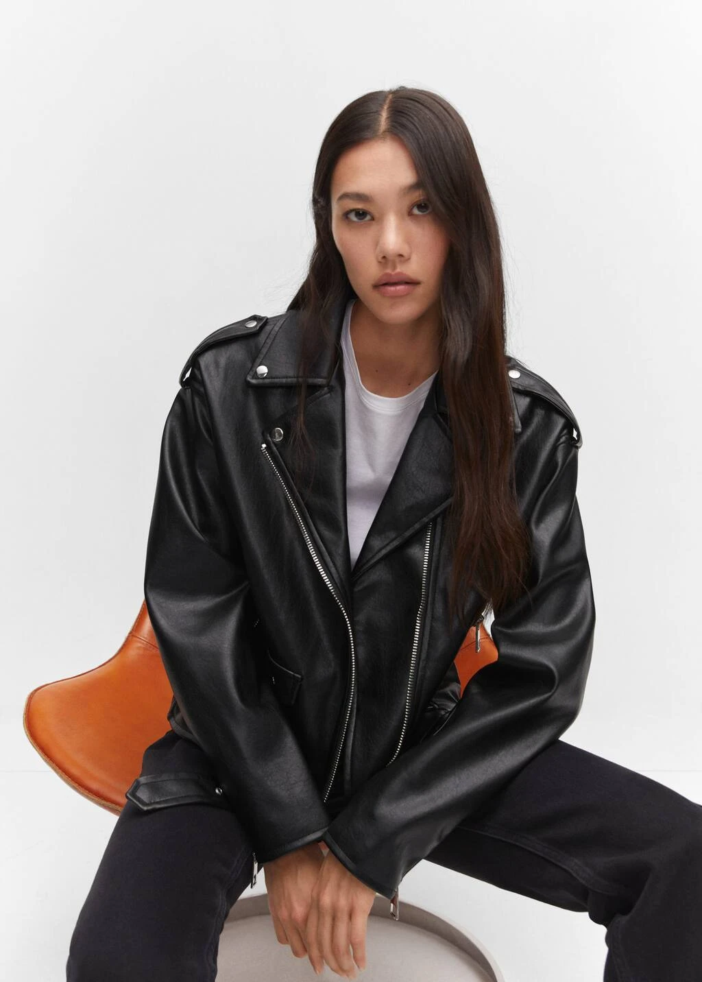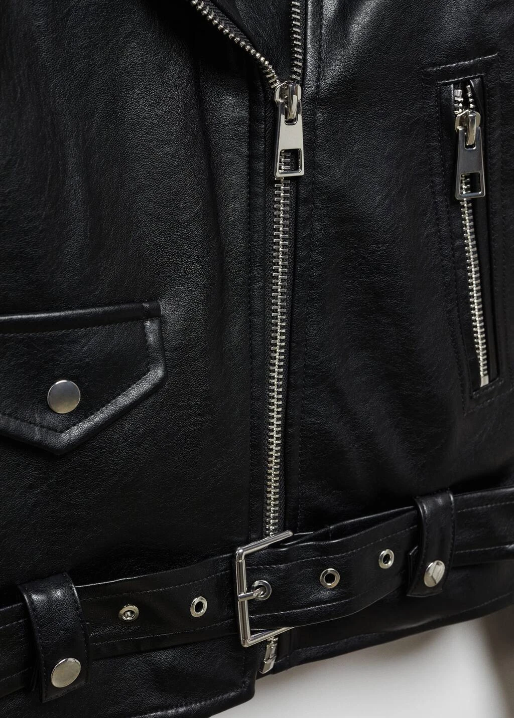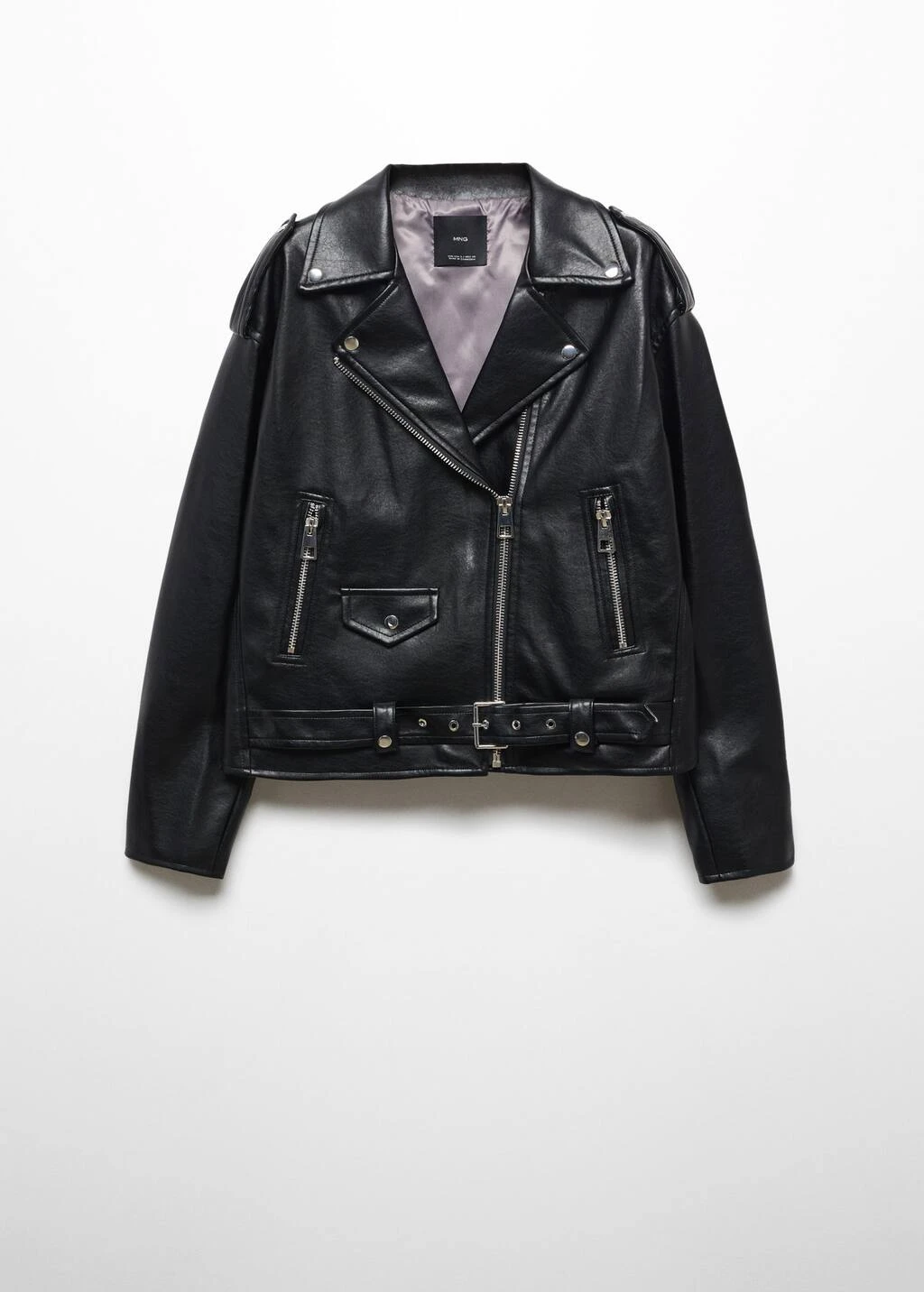 similicuir, style biker, coupe droite, coupe courte, style oversize, col a revers, manches longues, zip, fermeture eclair sur le devant, ceinture decorative, poches zippees sur le devant, boutons decoratifs sur les epaules, doublure, style bohoComposition: 100% polyester. Doublure: 100% polyester. RevĂŞtement: 100% polyurethane. Recouvrement de la ceinture: 100% polyurethane. Base de la ceinture: 100% polyester