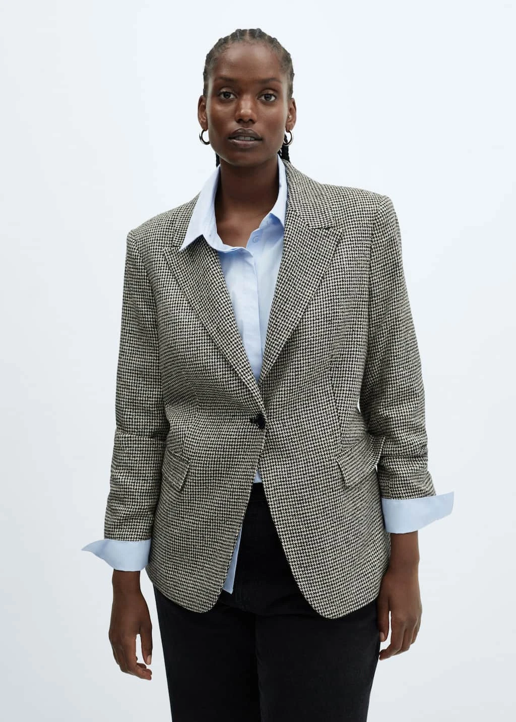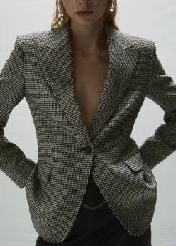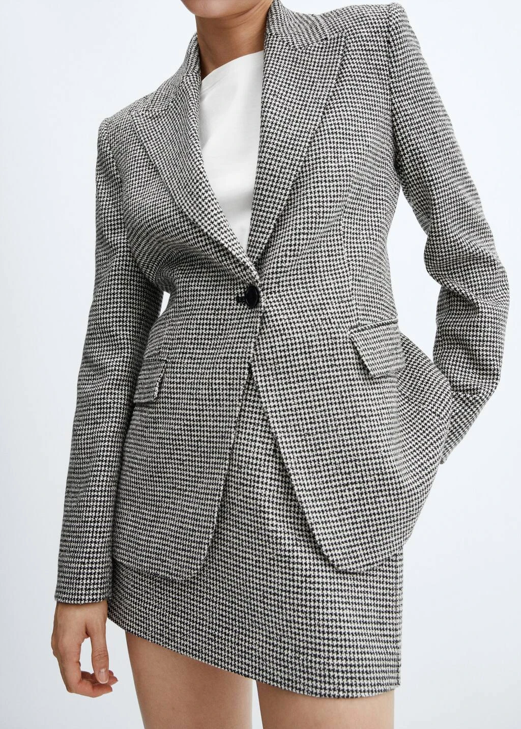 tissu fluide, coupe droite, imprime pied-de-poule, col en v avec rabat, manches longues avec poignets boutonnes, poche passepoilee avec rabat decoratif, fermeture a bouton sur le devant, doublure, total look, disponible plusComposition: 79% acrylique,13% polyester,7% viscose,1% elasthanne. Doublure: 55% polyester,45% viscose. Doublure manches: 100% polyester. Lisiere: 100% polyester