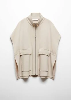 col montant, manches courtes, deux poches a rabat a l’avant, cordon de serrage a la taille, fermeture eclair sur le devant, fentes laterales, total lookComposition: 81% polyester,14% viscose,5% elasthanne