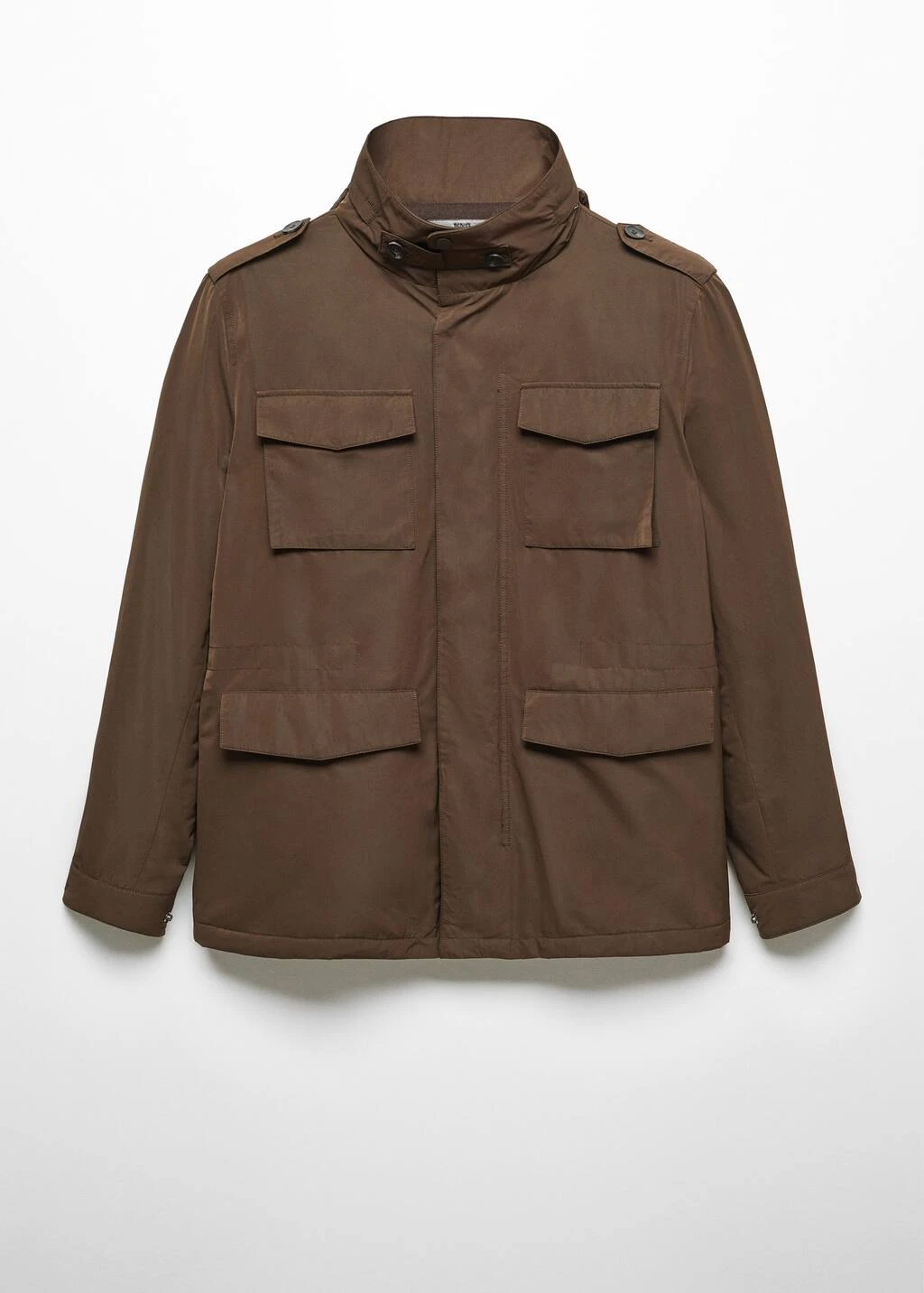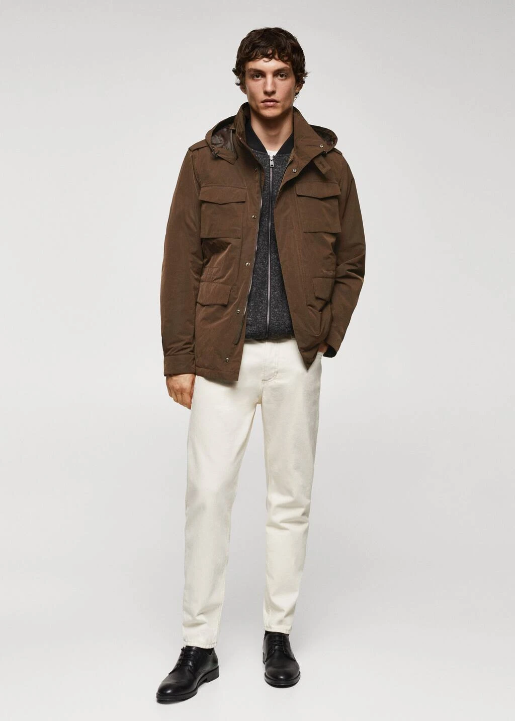 regular-fit, tissu en polyester recycle, rembourrage 100 % polyester recycle, tissu impermeable, hydrofuge : tissu technique resistant a l’eau, thermoregulateur : regule la temperature du corps, capuche amovible, col cheminee boutonne, fermeture eclair et boutons-pression a l’avant, deux poches plaquees a rabat sur la poitrine, deux poches a rabat a l’avant, manches longues avec poignets boutonnes, bas droit, cordon interieur de serrage a la taille, poche interieure avec fermeture a bouton, le mannequin mesure 190 cm et porte une taille mComposition: 85% polyester,15% polyamide. Doublure: 100% coton. Doublure manches: 55% polyester,45% viscose. Rembourrage: 100% polyester