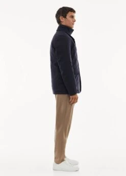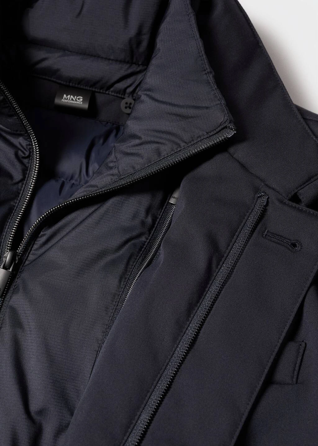 rembourrage en plume, hydrofuge : tissu technique resistant a l’eau, entretien facile : la finition du tissu facilite l’entretien et le repassage du vetement, matelasse, slim-fit, double col, col boutonne, fermeture eclair a l’avant, poche passepoilee sur la poitrine, deux poches a rabat, manches longues, bas droit, le mannequin mesure 190 cm et porte une taille m, « la selection performance propose des vetements fabriques a partir de fibres techniques qui vous permettront de rester impeccable et a l’aise toute la journee, quoi que vous fassiez et ou que vous alliez. cette selection haute performance presente une vaste gamme de caracteristiques avancees telles que des tissus bi-stretch, a sechage rapide, faciles a repasser, thermoregulateurs, respirants ou resistants a l’eau, organises en quatre categories generales : thermoregulateur, fonctionnel, facile d’entretien et confortable. « Composition: 50% polyester recyclé,27% viscose,20% polyester,3% elasthanne. Doublure: 100% polyamide. Interieur: 100% polyester. Cannelé: 84% polyamide,16% elasthanne. Rembourrage: 50% plume de canard,50% duvet de canard. Doublure poches: 100% polyester