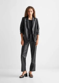 similicuir, coupe longue, coupe droite, deux poches sur le devant, fermeture frontale, fermeture a bouton, manches longues, le mannequin mesure 172 cm et porte une taille mComposition: 100% polyester. Doublure: 100% polyester. Finitions: 100% polyurethane