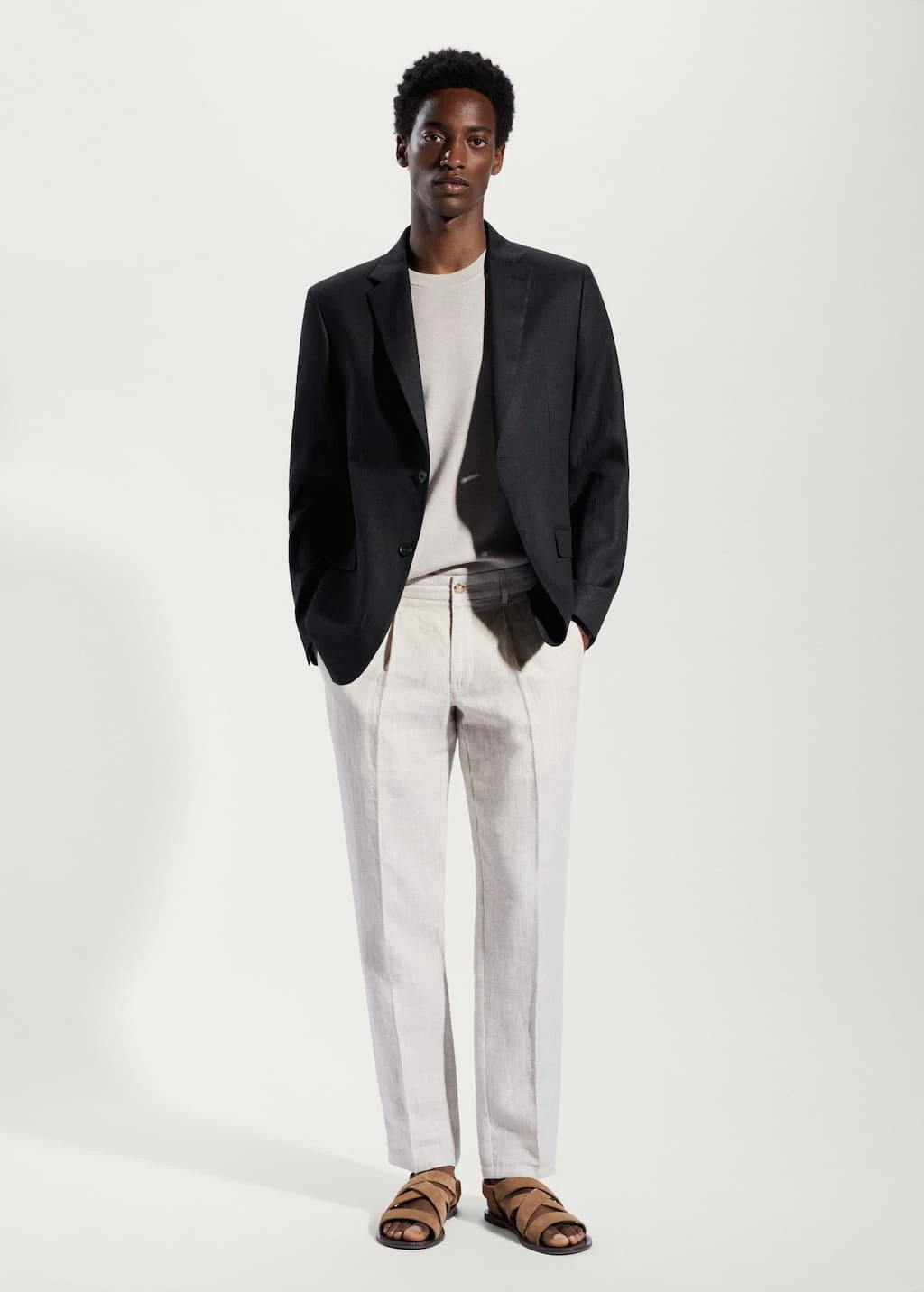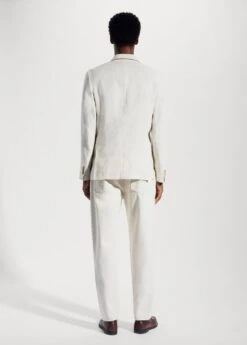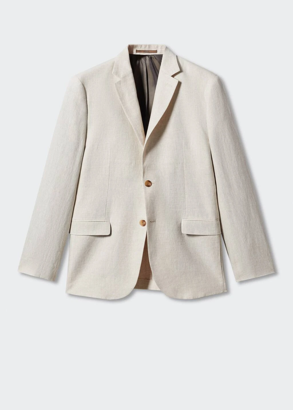 tissu 100Â % lin, slim-fit, tissu leger, revers crantes, fermeture boutonnee sur le devant, deux poches a rabat sur le devant, manches longues avec poignets boutonnes, double ouverture au dos, bas droit, doublure, trois poches interieuresComposition: 100% lin. Doublure: 53% polyester,47% viscose
