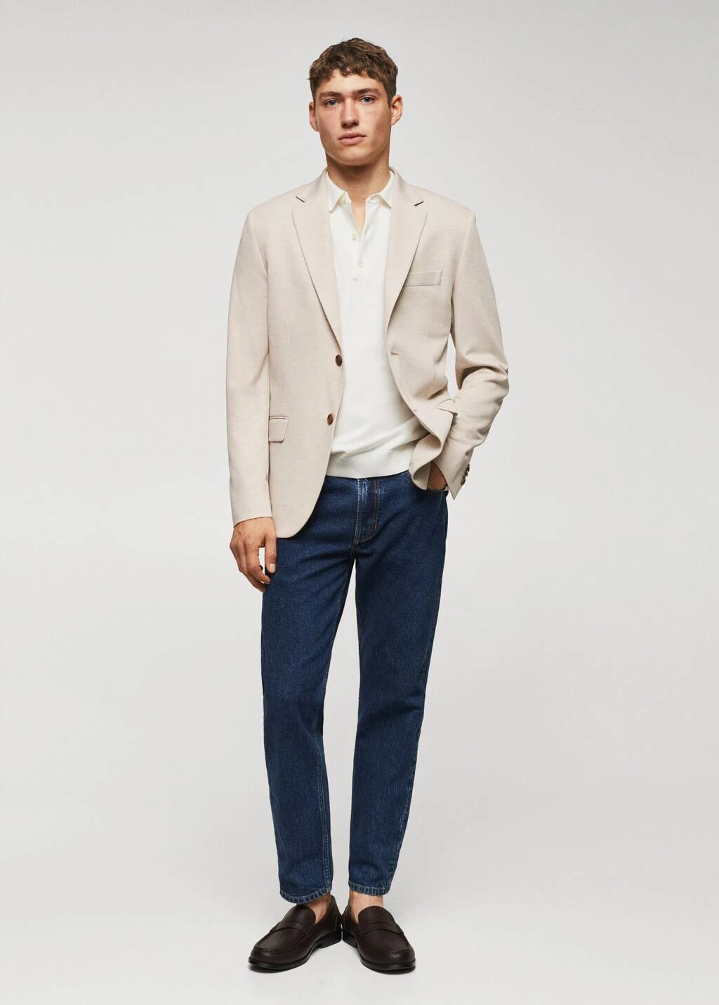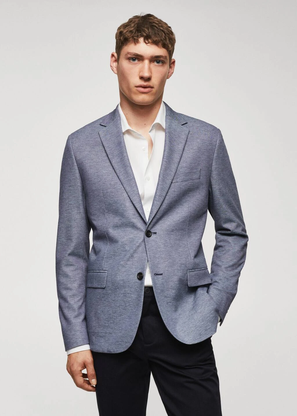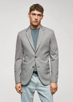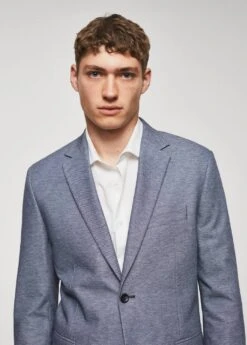 slim-fit, tissu structure, confectionne en polyester, une fibre resistante, respirante et facile d’entretien qui permet un grand confort d’utilisation, revers crantes, tissu fin, fermeture a deux boutons sur le devant, col a revers, fermeture a boutons sur le devant, poche passepoilee sur la poitrine, deux poches a rabat sur le devant, deux poches a rabat a l’avant, manches longues avec poignets boutonnes, double ouverture au dos, doublure, poche interieure avec fermeture a bouton, bas droit, doublure sur le devant, deux poches interieures, le mannequin mesure 187 cm et porte une taille 50, collection essentiels, le polyester recycle est obtenu a partir de dechets textiles de polyester, de dechets marins ou de bouteilles en plastique pet qui sont utilises pour produire de nouveaux tissus.Composition: 67% polyester,22% viscose,8% polyamide,3% elasthanne. Doublure: 53% polyester,47% viscose