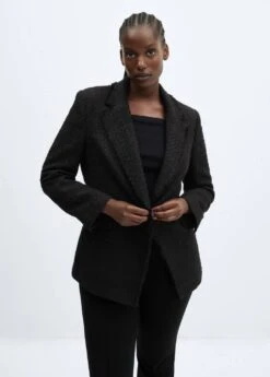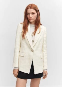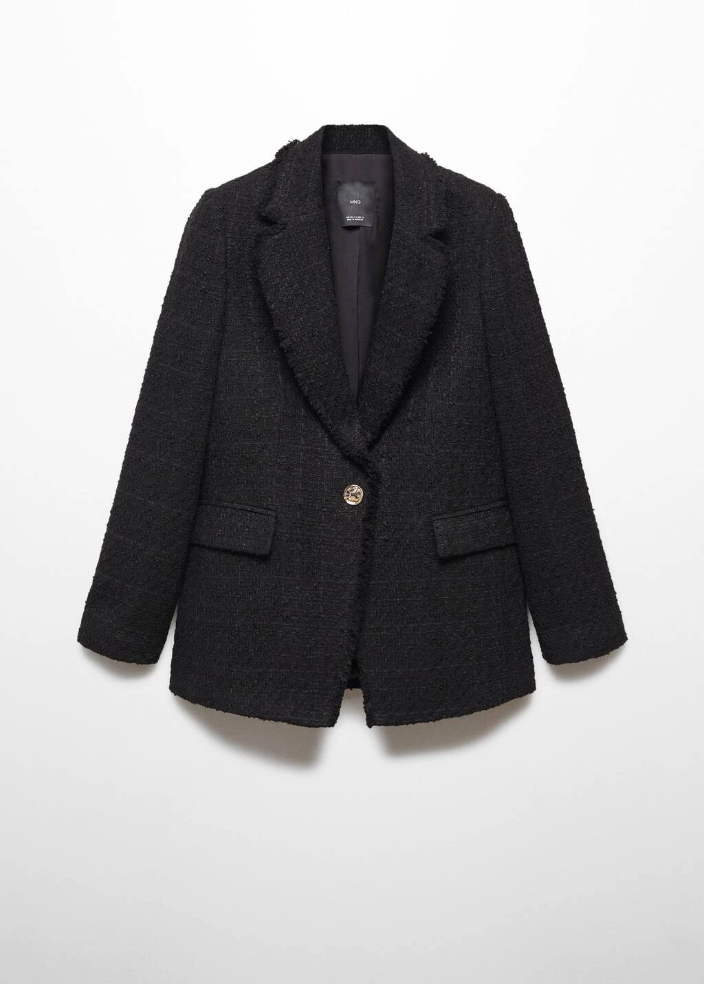 tissu tweed, coupe droite, col en v avec rabat, manches longues, deux poches a rabat a lâavant, fermeture a bouton, bords effiloches, disponible plusComposition: 40% polyester,38% acrylique,20% coton,2% viscose. Doublure: 100% polyester. Doublure manches: 100% polyester