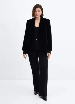 tissu en velours, droit, coupe longue, col en v avec rabat, revers crantes, manches longues, deux poches passepoilees et a rabat sur le devant, poche passepoilee sur la poitrine, fermeture a bouton sur le devant, doublure, disponible plusComposition: 100% polyester. Doublure: 100% polyester. Lisiere: 100% polyester