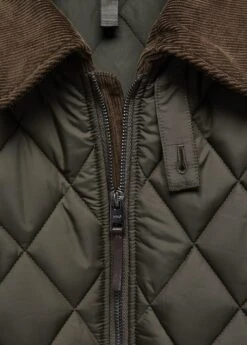 thermoregulateur : regule la temperature du corps, tissu en polyester recycle, rembourrage en polyester recycle, coupe droite, matelasse, col en velours cotele, col velours cotele avec fermeture a laniere et bouton, details interieurs en velours cotele , fermeture eclair a l’avant, deux poches a rabat a l’avant, manches longues, bas droit, le mannequin mesure 190 cm et porte une taille m, taille petit, il est recommande d’acheter une taille au-dessusComposition: 100% polyester. Doublure: 100% polyester. Interieur: 100% coton. Col: 100% coton. Rembourrage: 100% polyester